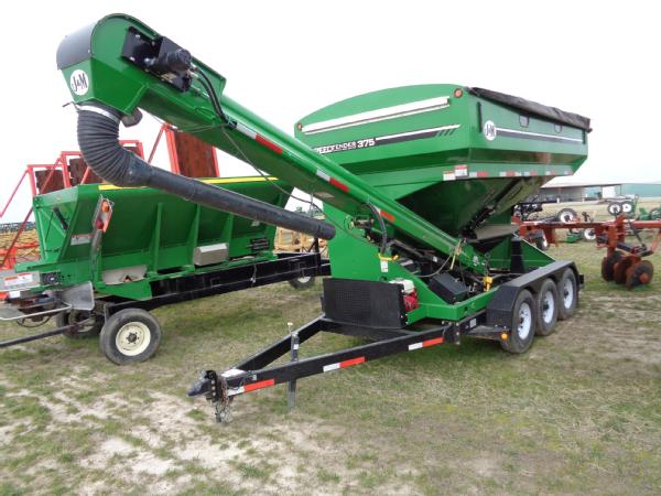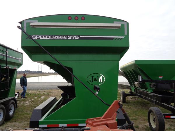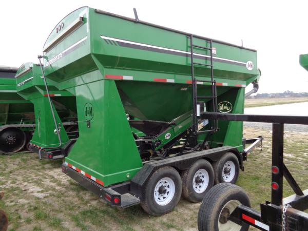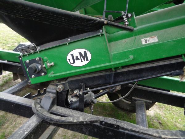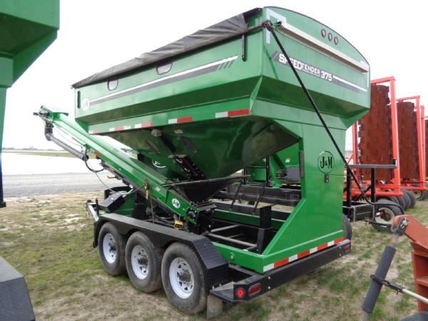 2012 J&M Model 375 Seed Tender (ID# CP-018), large capacity seed hopper, roll tarp, Honda gas motor, remote control, triple axle, ST235/85R16 tires, Avery Weigh-Tronic digital scale.