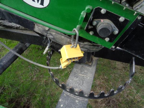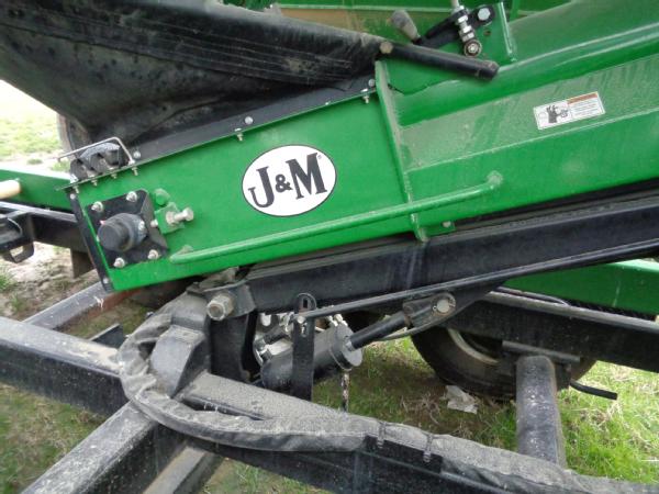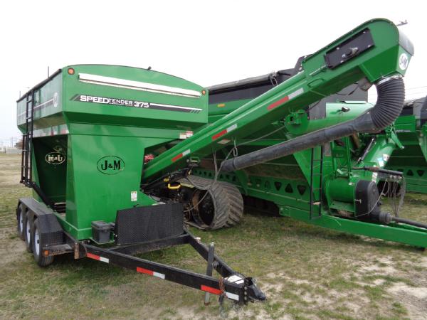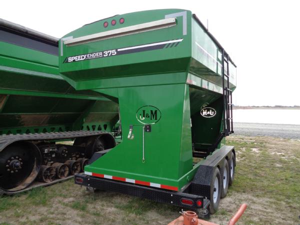 2012 J&M Model 375 Seed Tender (ID# CP-019), large capacity seed hopper, roll tarp, Honda gas motor, remote control, triple axle, ST235/85R16 tires, Avery Weigh-Tronic digital scale.