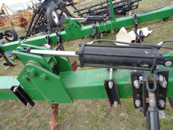 Notes: Top link pin missing, left wing frame is cracked at cylinder mount, right wing frame is cracked at cylinder mount, connects for the hydraulic hoses to the tractor are missing, 2nd plow from left is missing.