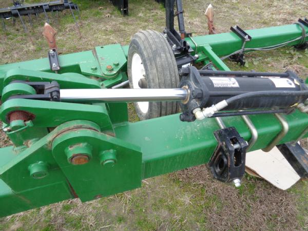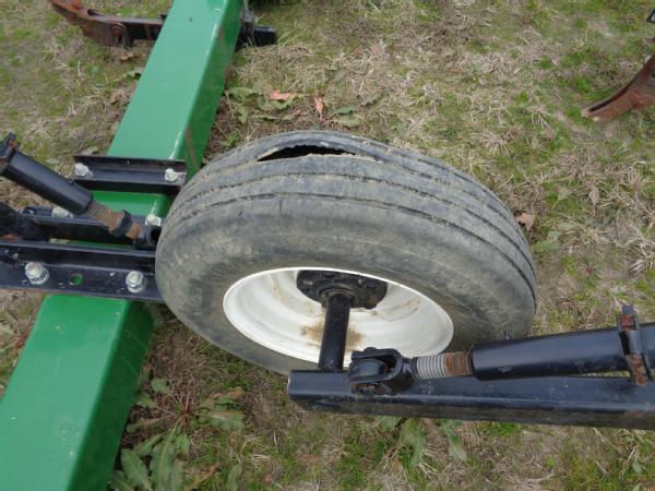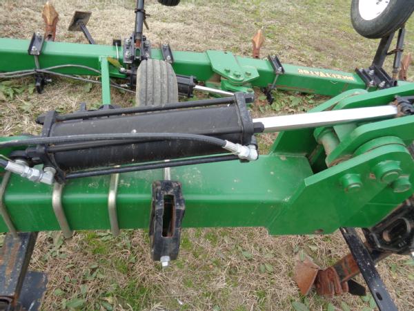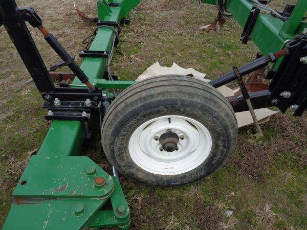 Notes: Top link pin missing, left wing frame is cracked at cylinder mount, right wing frame is cracked at cylinder mount, connects for the hydraulic hoses to the tractor are missing, left stand is broken off, right stand is cracked & bent, one front plow is missing, five rear plows are missing, left outside gauge wheel is flat, left inside gauge wheel is flat.