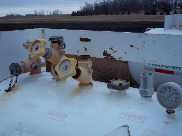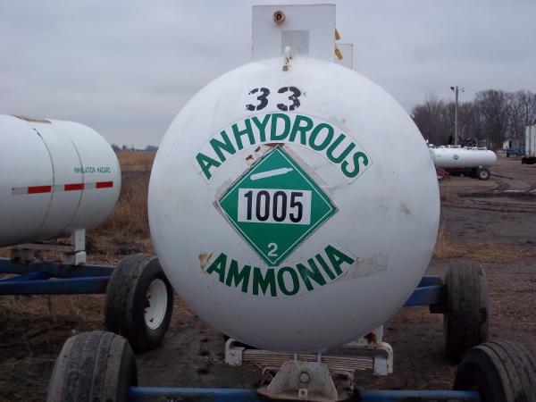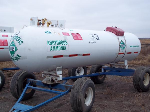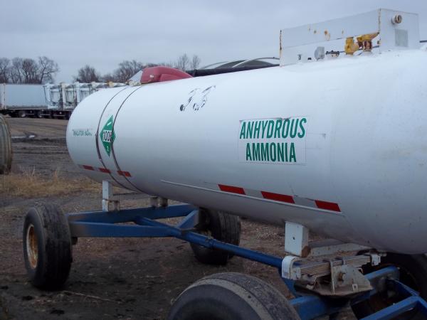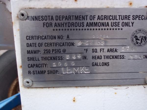 NH3 Nurse Tank (DR-146), 1000 gallon top front fill tank, data tag, 5th wheel style gear, 11L-15 tires, Unit T33.
