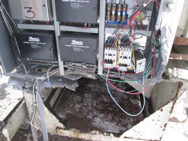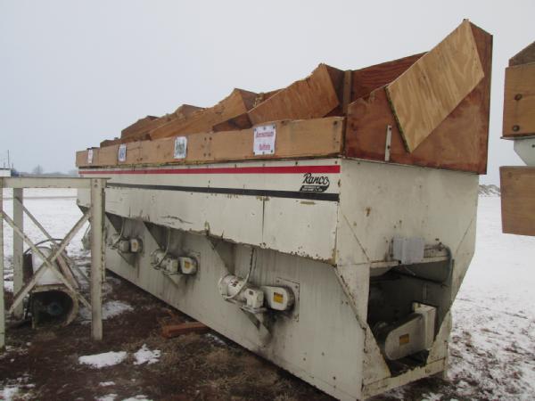 Ranco Blender (DR-148), approximately 30' stainless steel receiving leg, top drive Dodge reducer, 4 compartment blender plus lime 5th compartment and blending auger, each compartment has 1.5 hp electric drive motor, complete control panel.