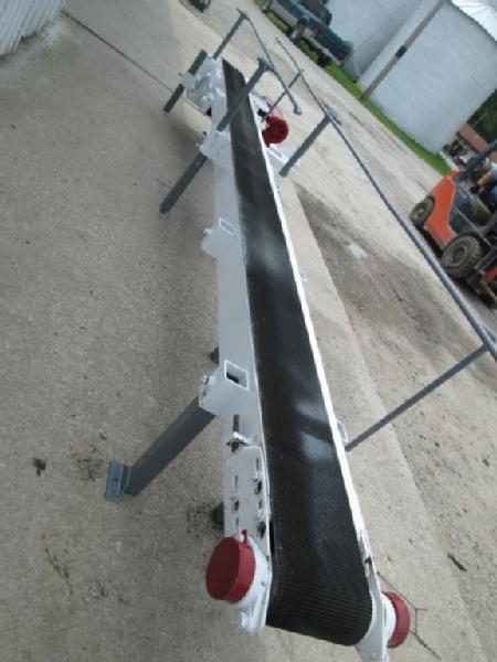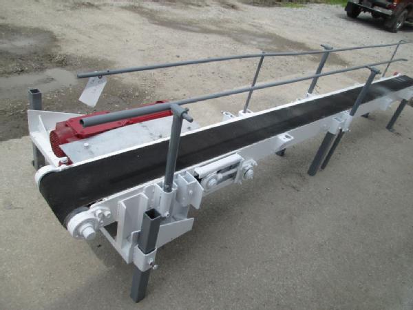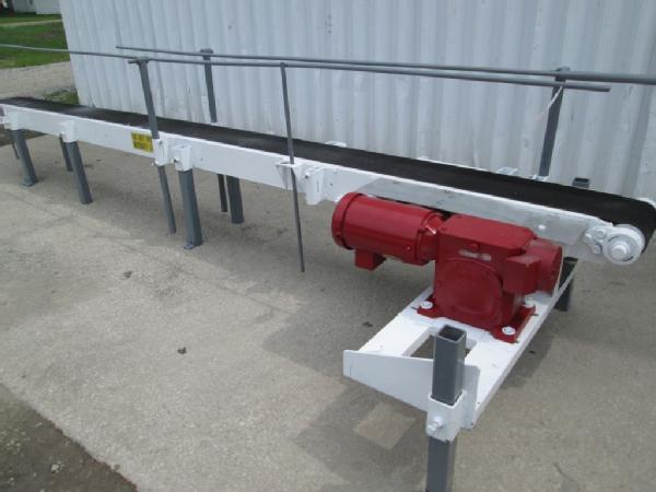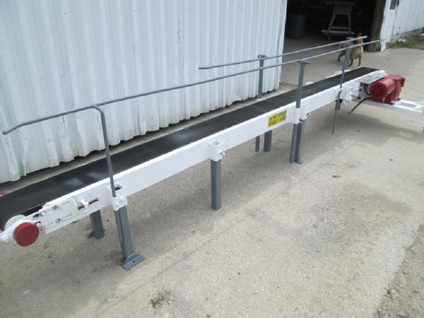 Sewing Line Conveyor (Item #004), 13' 6" long, 8" wide belt, 2HP, 208/230/460 volts, 3 phase motor, unit has been bag guiding side rails, has been tested and runs.