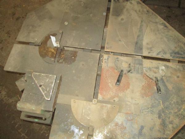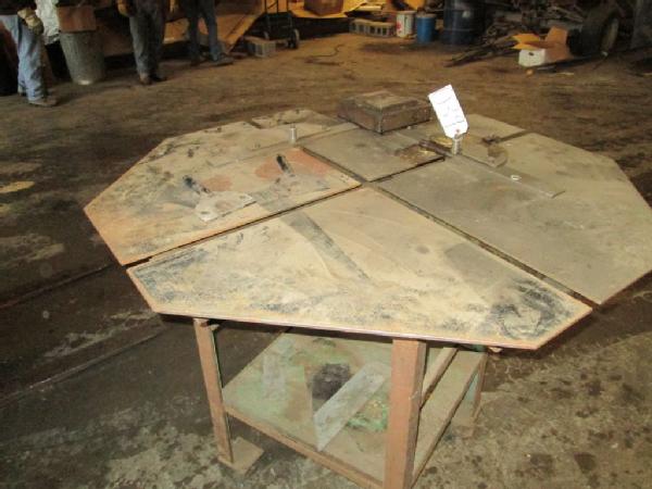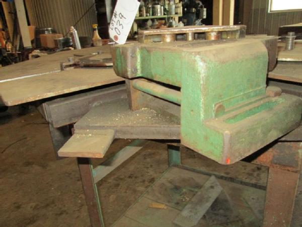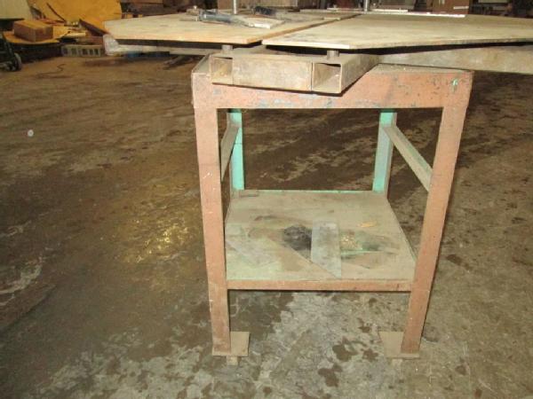 Jig Table for Sheet Metal (Item #039), with notching shear on corner and table is on rollers.