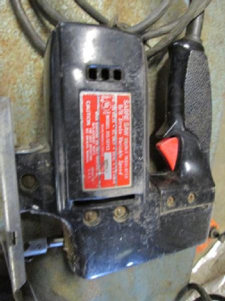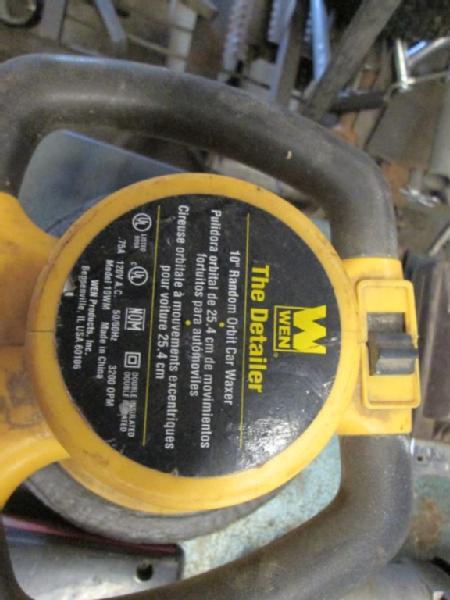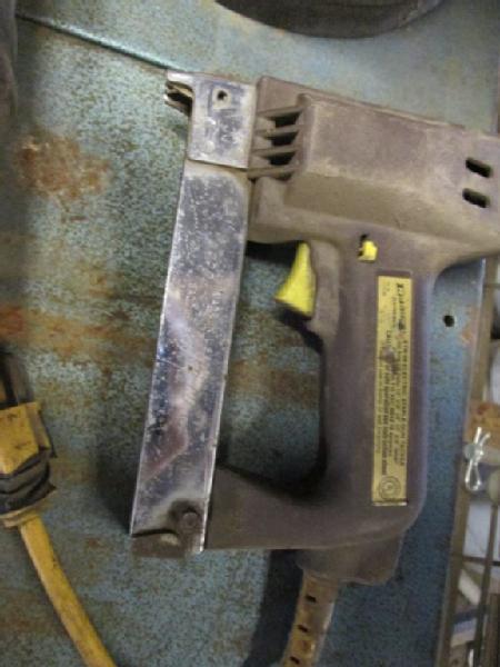 Assortment of Electric Tools (Item #047), Stapler, Wen 10" car polisher/buffer, Craftsman 1/2" impact wrench, Saber jigsaw.