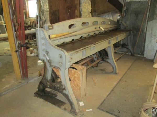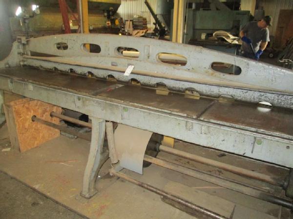 George A Ohl and Company Electric Shear (Item #048), 10', 14 gauge capacity, foot operated, 4 sided blade, has been sharpened and only one side used.