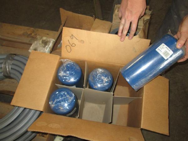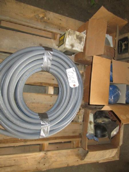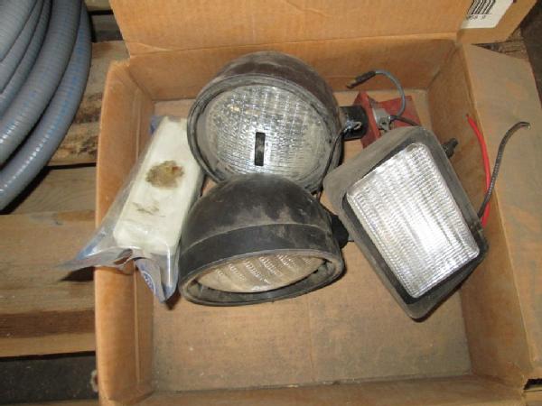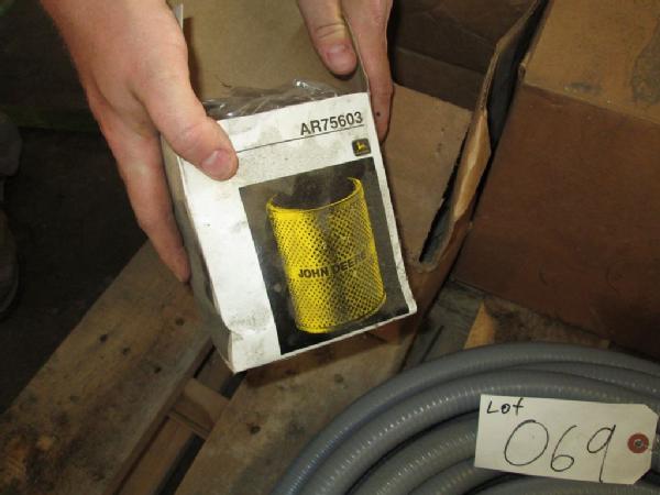 Conduit, Oil Fiters and Lights (Item #069), approx. 50" of 3/4 flex conduit (new), 3 tractor headlights (have been tested to ensure they work), 4 large oil filters, air filter and bin caulk.