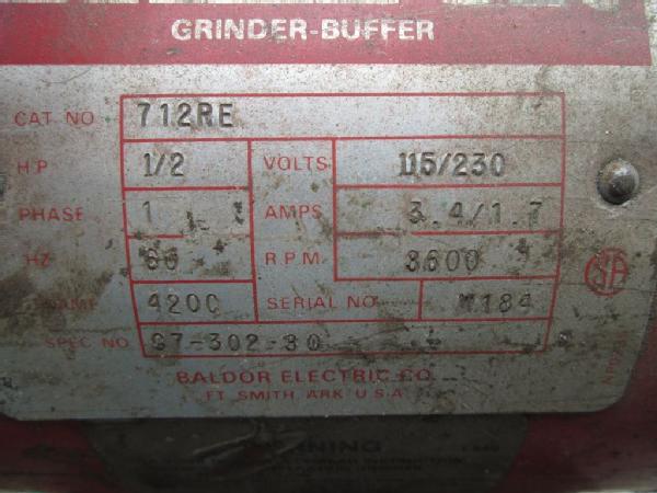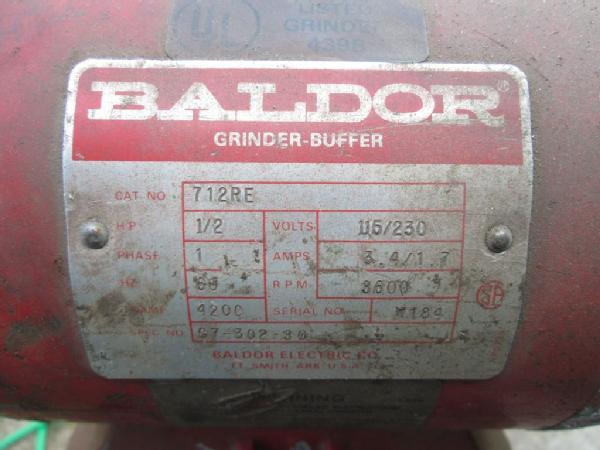 Baldor Benchtop Grinder (Item #073), single phase on wheels, 1/2HP, 3600 RPM, 115/230 volts.