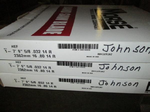 Kysor / Johnson Band Saw (Item #090), single phase, 3 new blades, also has material support stands and an automatic advancing system for repetitive cutting.