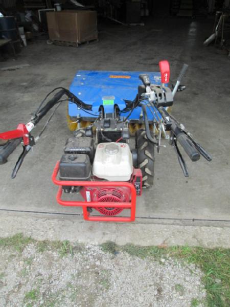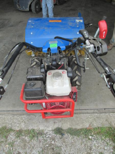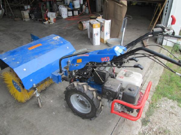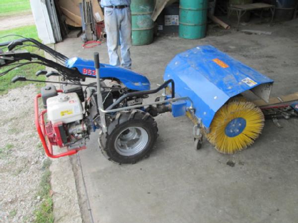 Professional BCS 853 Tractor (Item #102), with Honda mower, also includes power sweeper and duplex sickle bar mower with extra blade, power sweeper is 48" wide and sickle par mower is 48" wide, unit is like new, barely used.