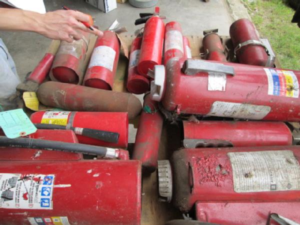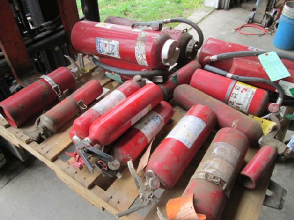 15 Fire Extinguishers (Item #104), various sizes, most are filled, 5 need recharged.