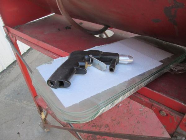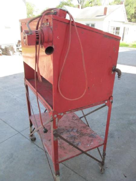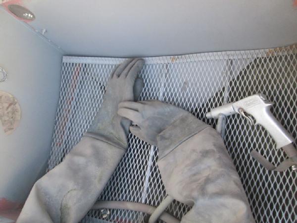 Snap On Sand Blasting Cabinet (Item #125), 34" wide x 24" long, with NEW gun, (8) extra glass windows, 110 volts.