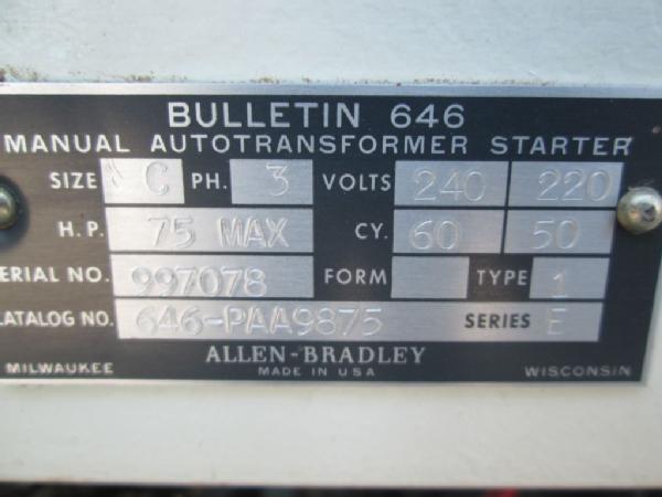 Allen Bradley Soft Start Motor Starter (Item #128), 75HP, 3 phase, 240 volts.