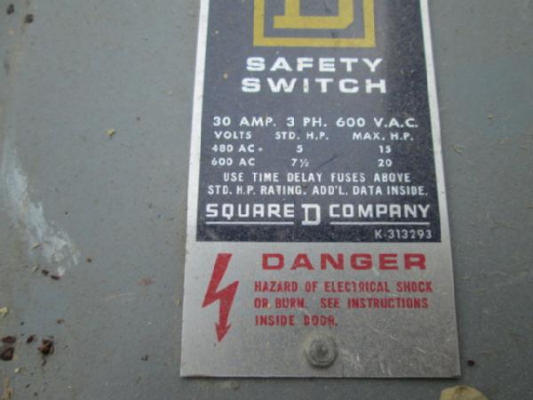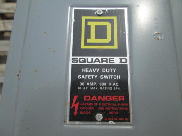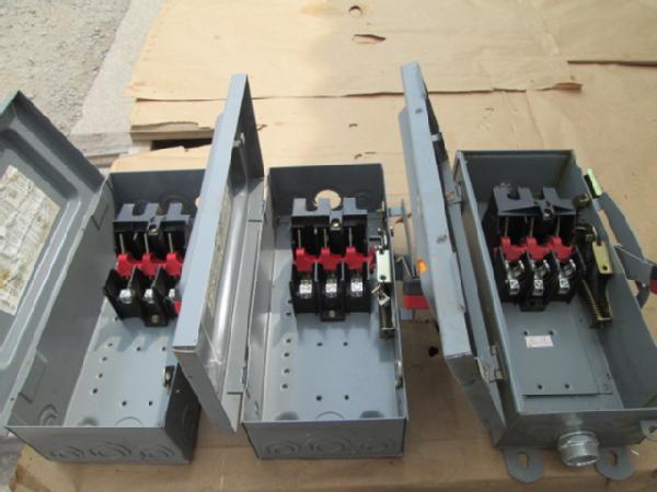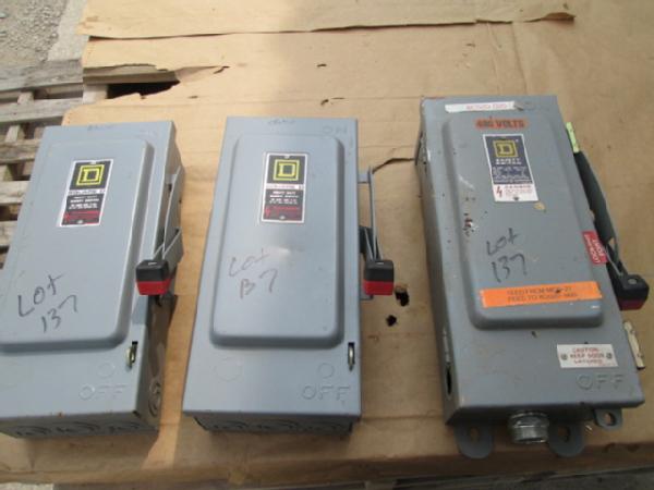(3) Square D Disconnects (Item #137), safety switches, 30 amp, 600 vac, 30HP max, like new.