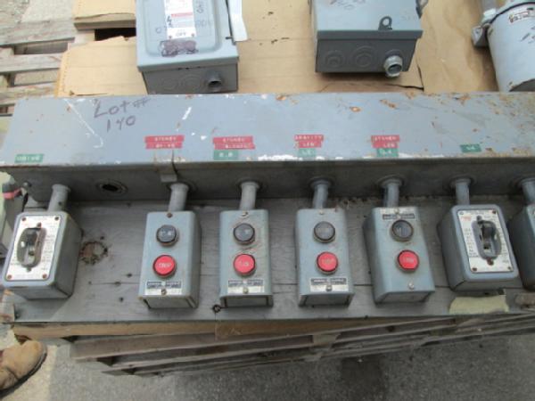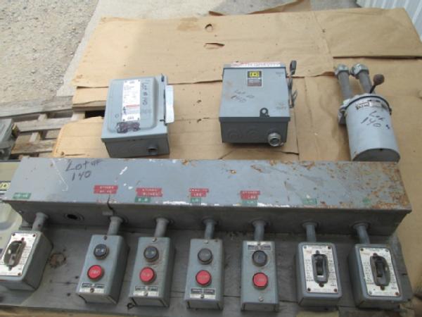 Switches / Disconnects (Item #140), forward and reverse switches, start and stop switches, (2) disconnects.