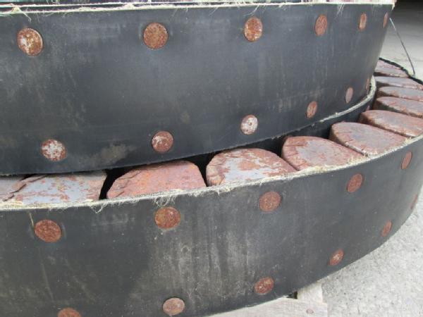 Belt With Metal Cups (Item #142), 102' belt with 4x6 metal cups, good useable belt, belt width 6 1/2", equivalent to a C3 belt.