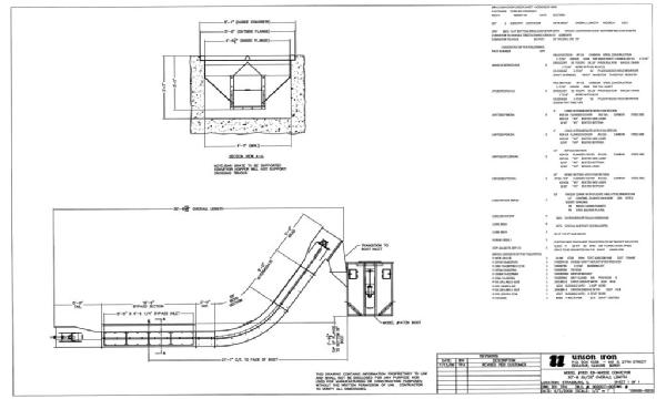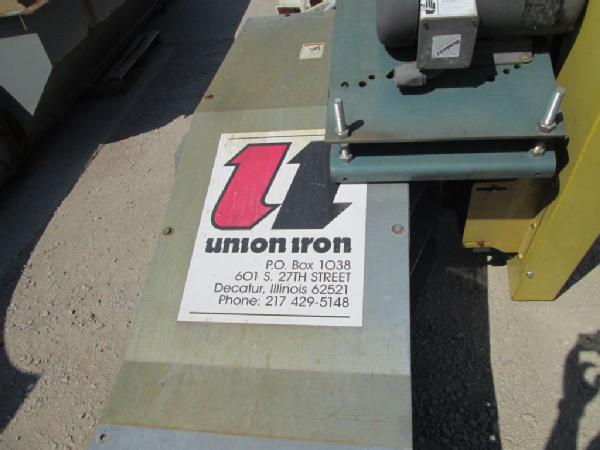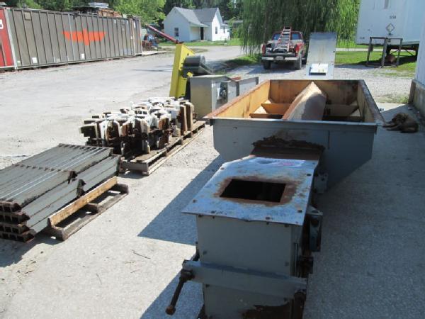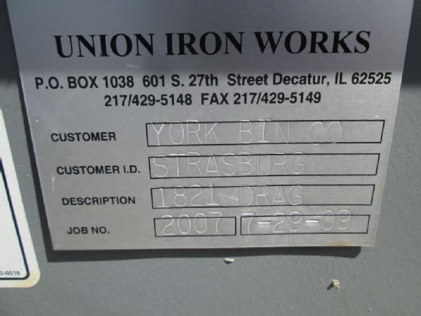 Model 1821 Large Drag Conveyor (Item #193), 8000 BPH, Union Iron, 10HP motor, 208-230/460 volts, with Dodge speed reducer, overall 31', incline 10', 10' x 5' drive over section, working load 11,500lbs of grain @ 48 PCF, chain speed 150 FPM @ 30 RPM, 45 degree bend section, see pictures for measurements/drawings.