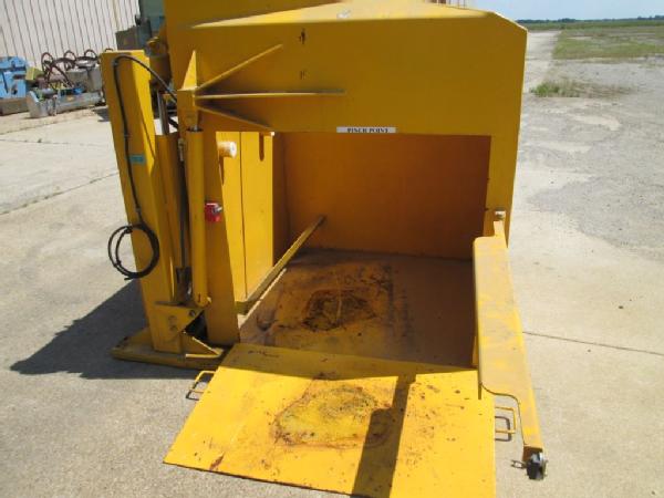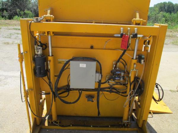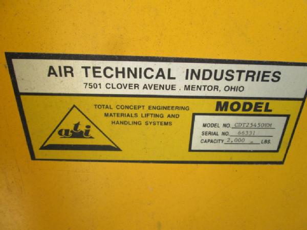 Air Technical Industries Box Dumper (Item #214), Model CDT25450IM, capacity 2000lbs, 1HP, single phase, 115-230 volts, inside dimensions 43" wide x 44" tall x 55" long, overall dimensions 67" wide x 72" tall x 78" long.
