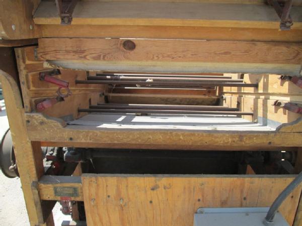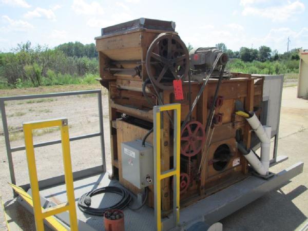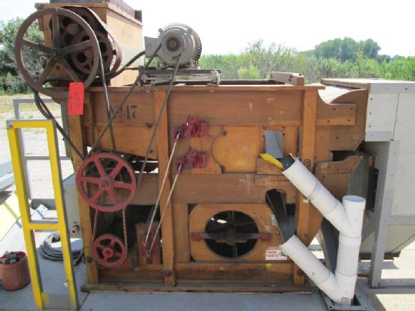 Clipper 47B Seed Cleaner on Mezzanine (Item #217), 2 screen cleaner with bottom air, 50 to 100 BPH capacity, with beans and wheat screens, 1.5HP, 230/460 volts, 3 phase, you can switch it to single phase, fixed to a mezzanine frame that is very well built, it allows you to feed it with a Pro Box and catch the clean grain in a Pro Box, also has a dust filter on the back side, nice unit.