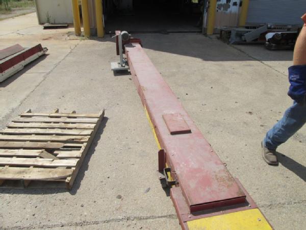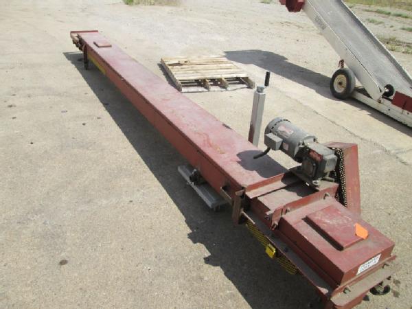 Belt Conveyor (Item #242), 17' length, 12" belt, on wheels, has jack at one end to raise the discharge, 230/460 volts, 1HP, 3 phase.