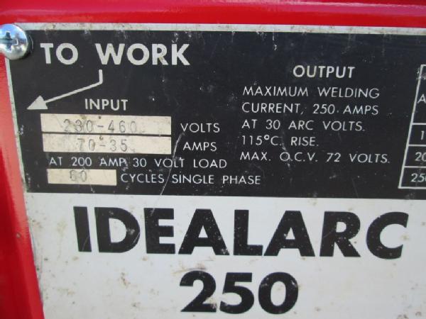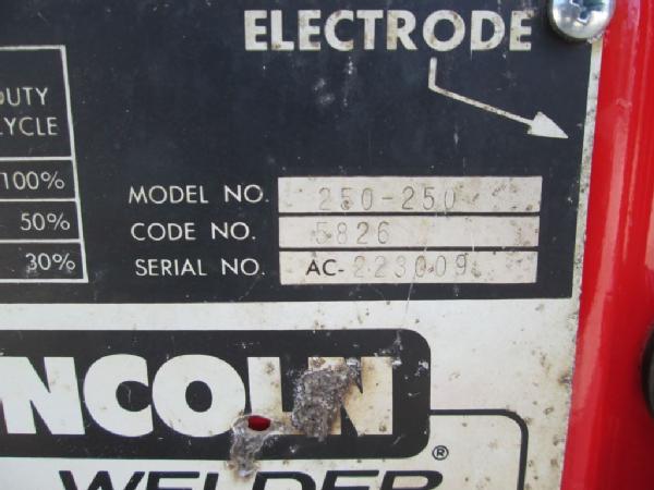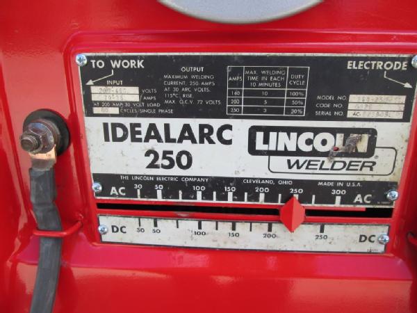 Lincoln Ideal Arc 250 Welder (Item #248), 220 single phase, comes with 30' leads, welds good, good heavy duty welder on an all-steel cart.