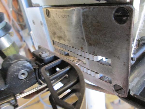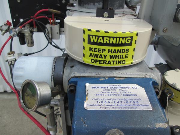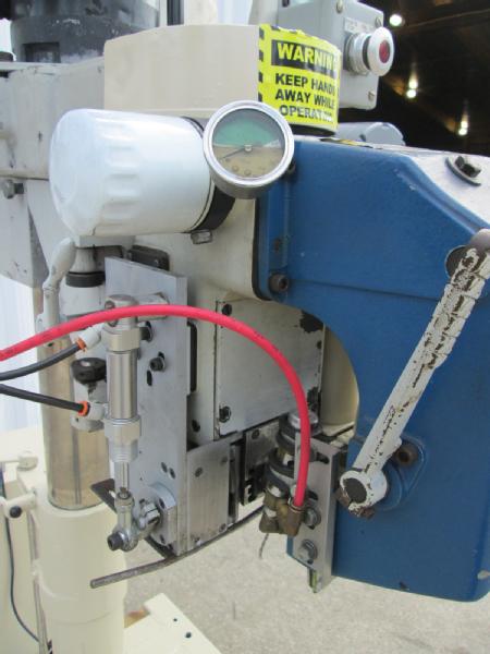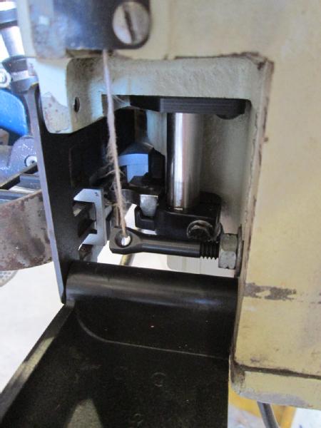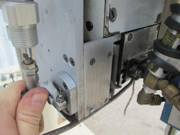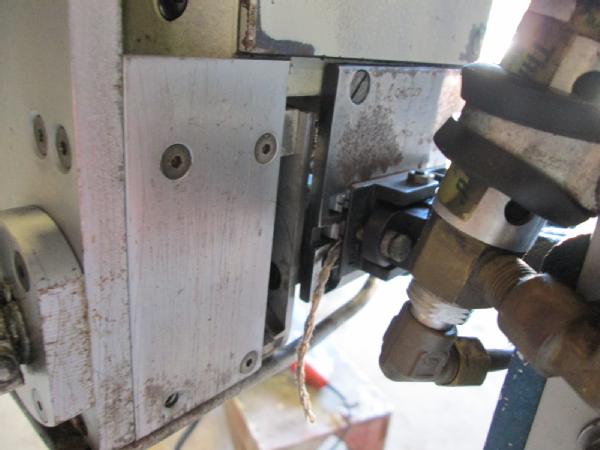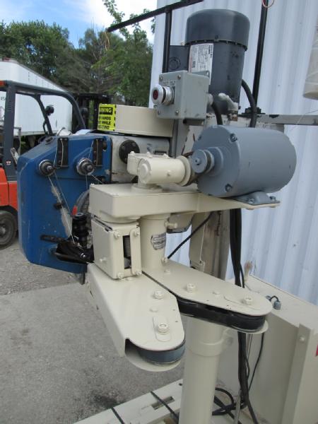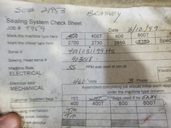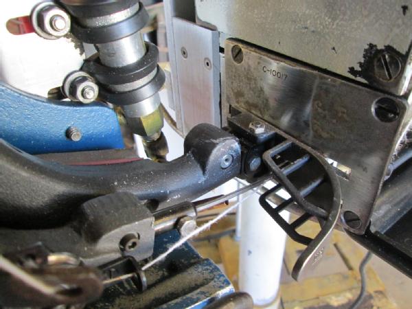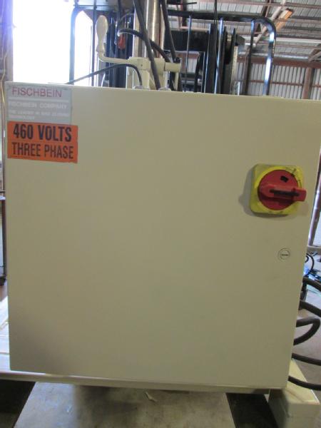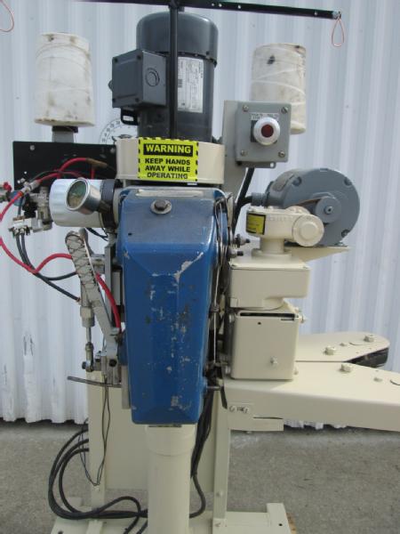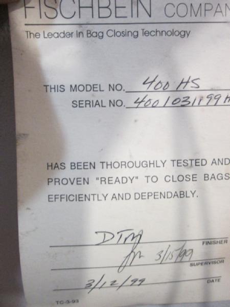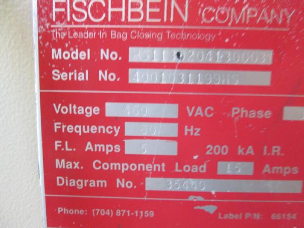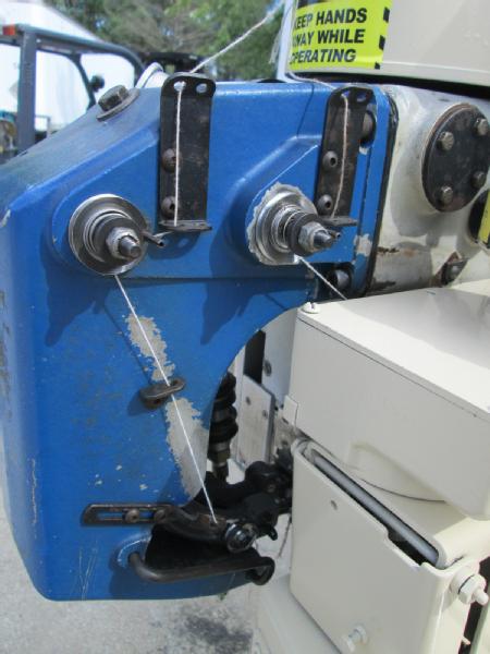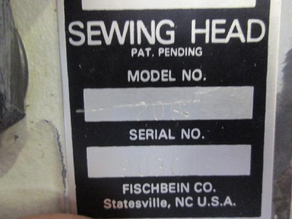 Fischbein 400HS Sewing Pedestal (Item #251), with power infeed, pedestal has adjustable height, sewing head is a model 200 with rotary knife thread cutter, and a power in-feeder, voltage is 460 volts, 3 phase, seller believes to be complete and functional, sewing head turns freely and still has thread in it.