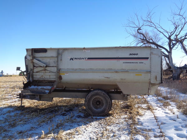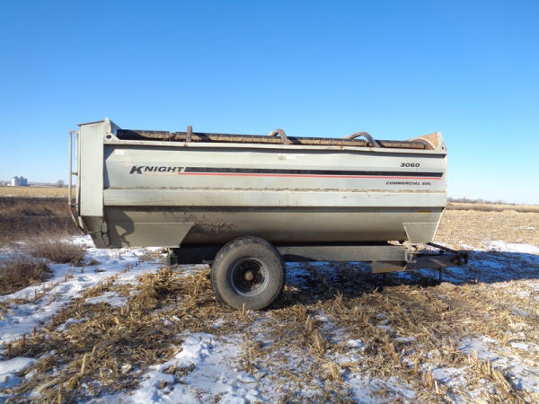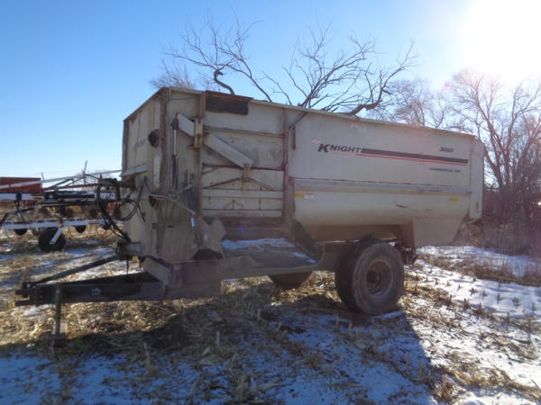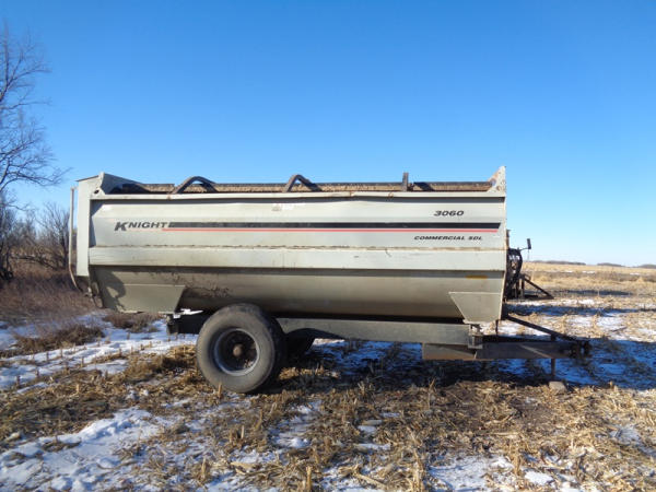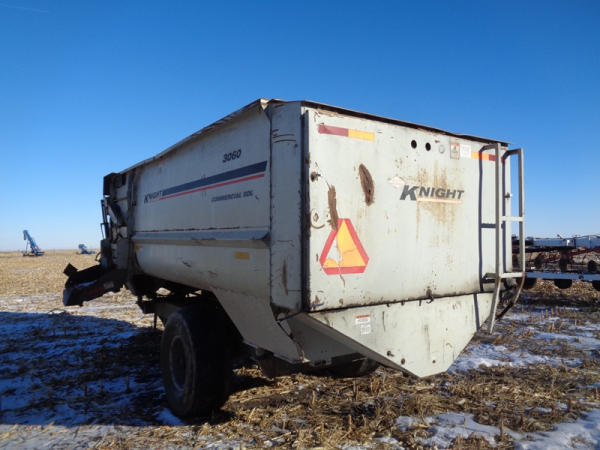 Knight 3060 Feed Body (PZ8209), Knight 3060 Commercial SDL pull type feed body, side discharge chute, PTO, flotation tires.