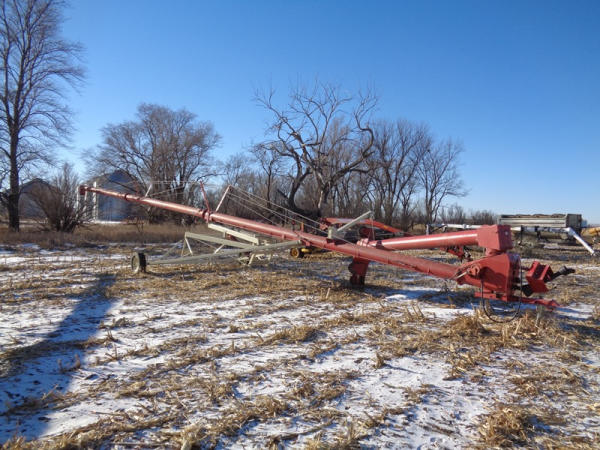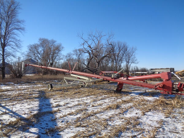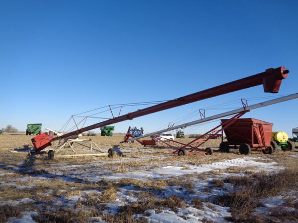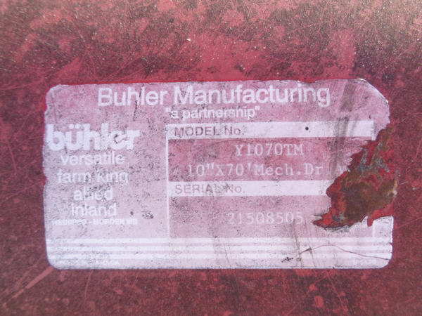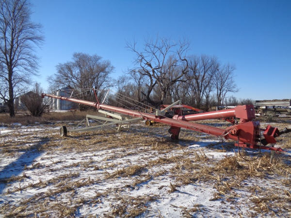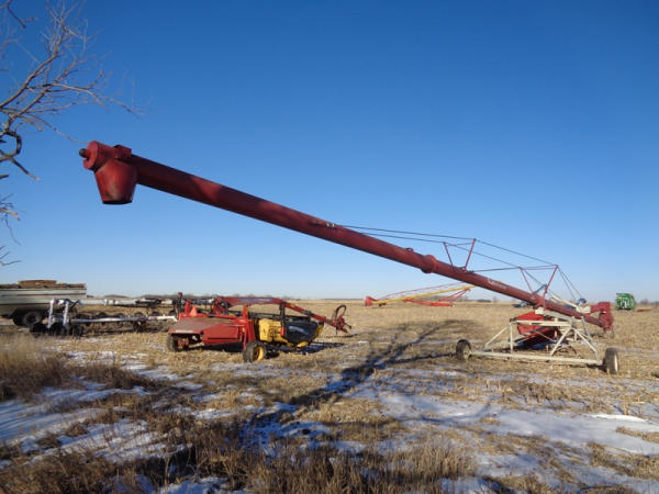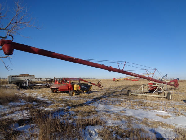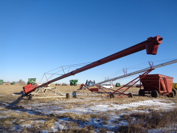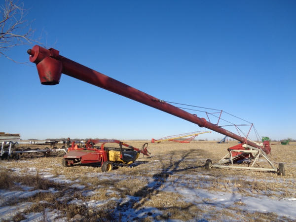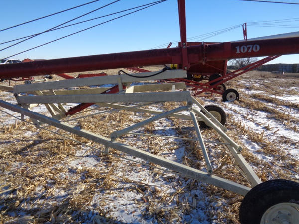 Buhler Grain Auger (PZ8206), Buhler 1070 portable grain auger, swing hopper, PTO, 215/70R15 tires.