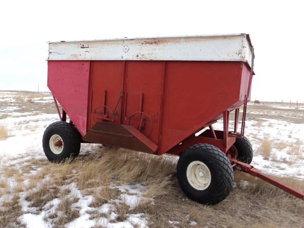 M & W Gravity Wagon (PZ8251), M & W 4 wheel gravity wagon, double door, auto steer gear, 13.50-16.1 tires.