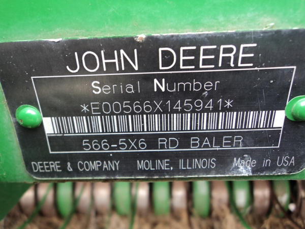2000 John Deere Baler (PZ8255), 2000 John Deere model 566 round baler, PTO, 31x13.5-15 flotation tires.
