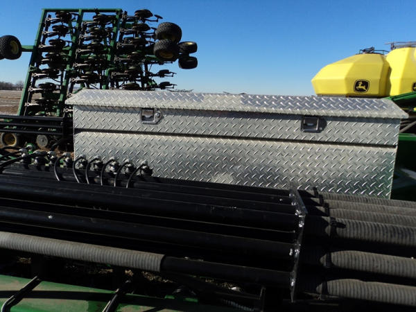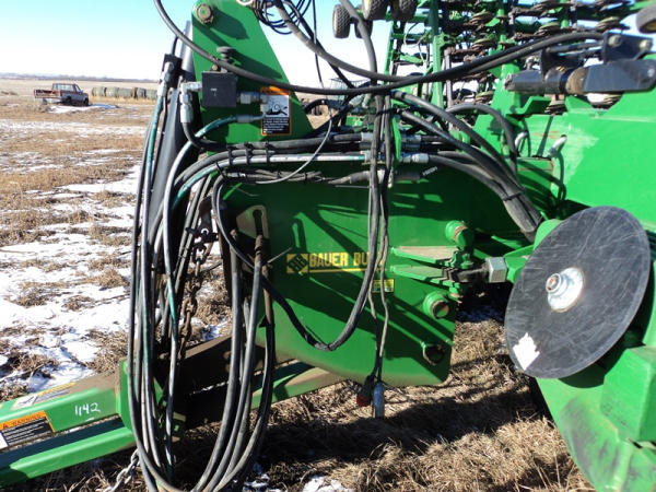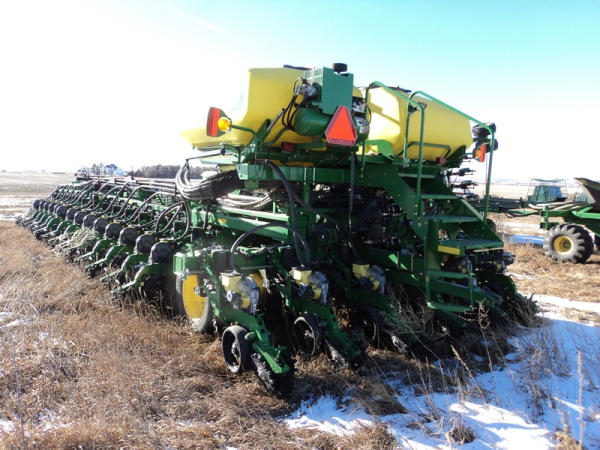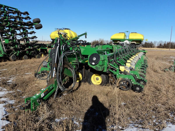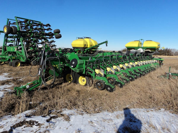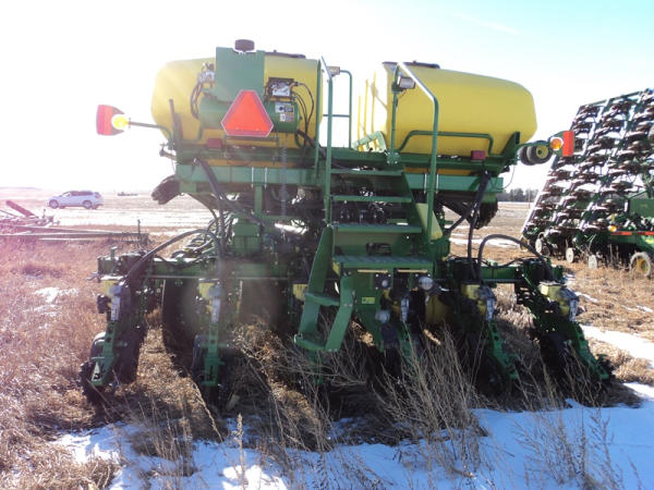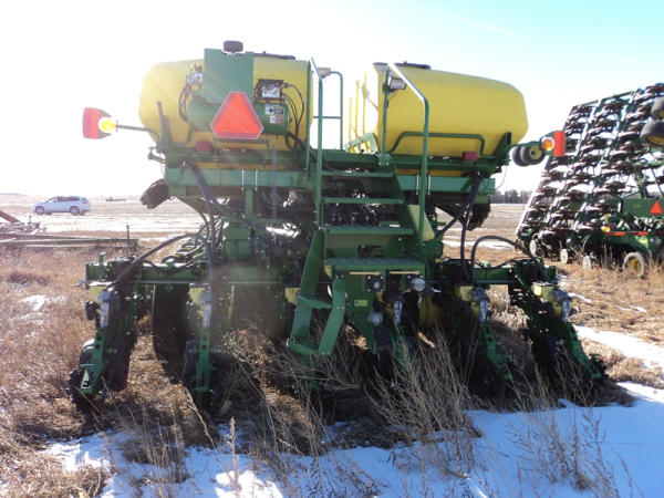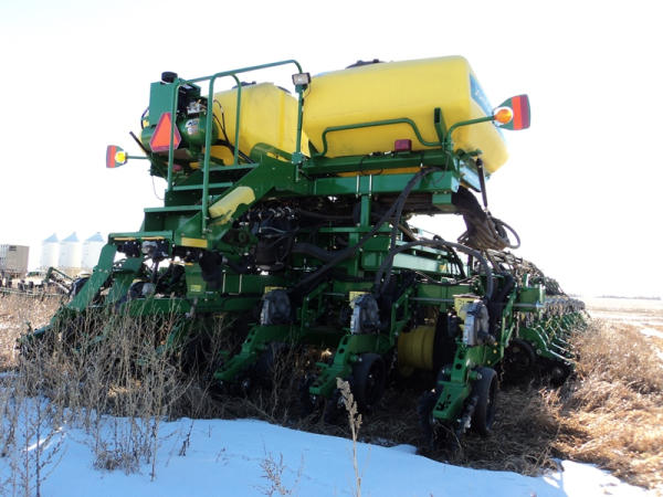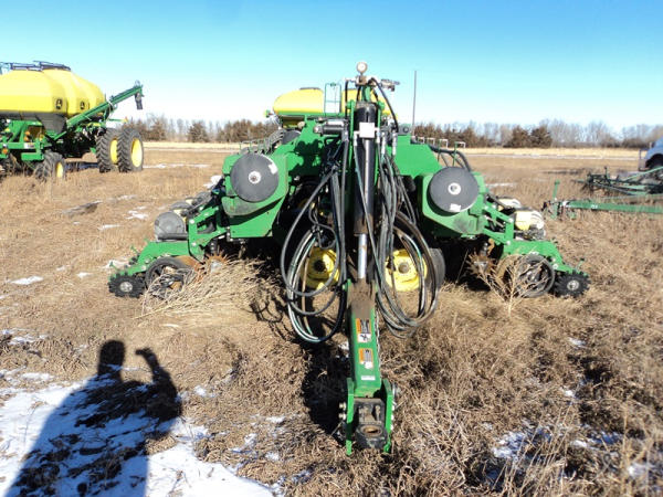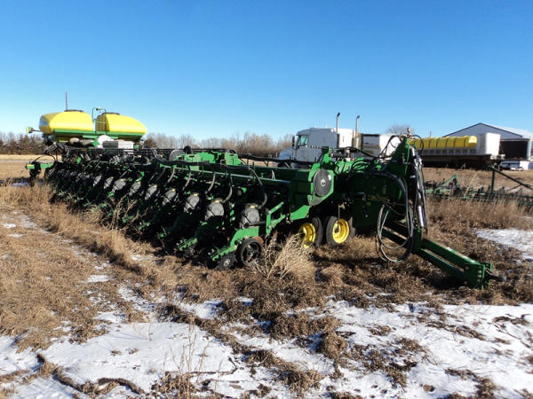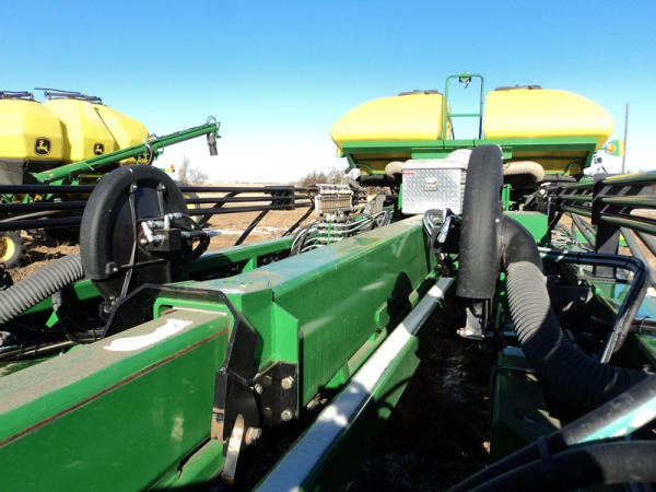 2012 John Deere DB 90 Planter (PZ8230), John Deere DB 90 36 row planter, CCS Seed Delivery system, row cleaners, weights, 445/50R22.5 tires, Bauer Built frame (S/N 1PAM3630EA0750528), S/N 1A0DB90XACM750152, with a RedBall 1700 liquid caddy, 1600 gallon poly liquid tank, Titan 18.4-26 tires.