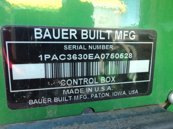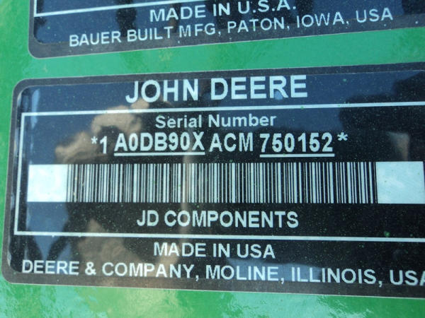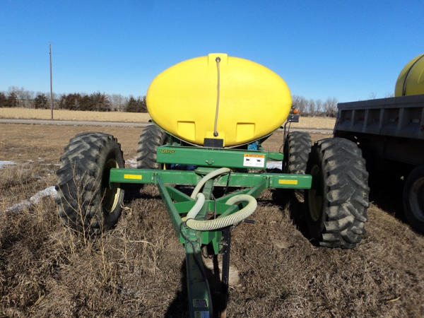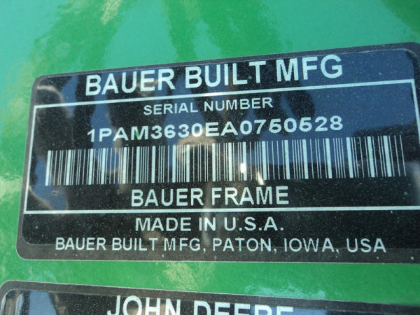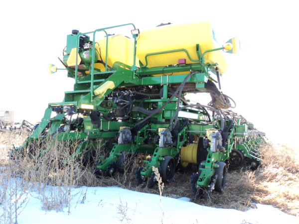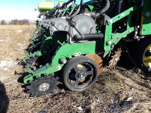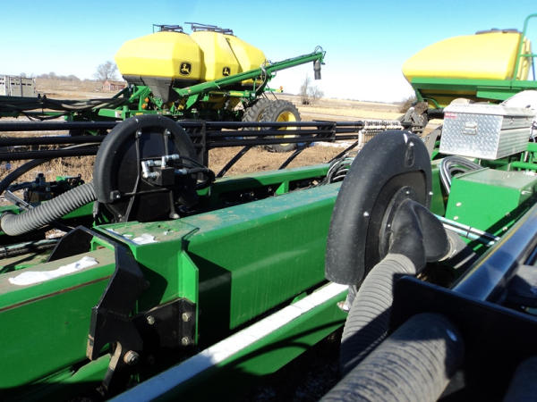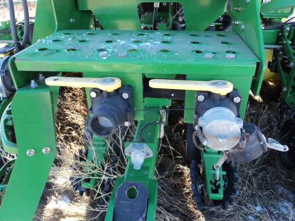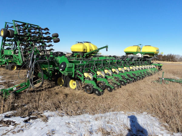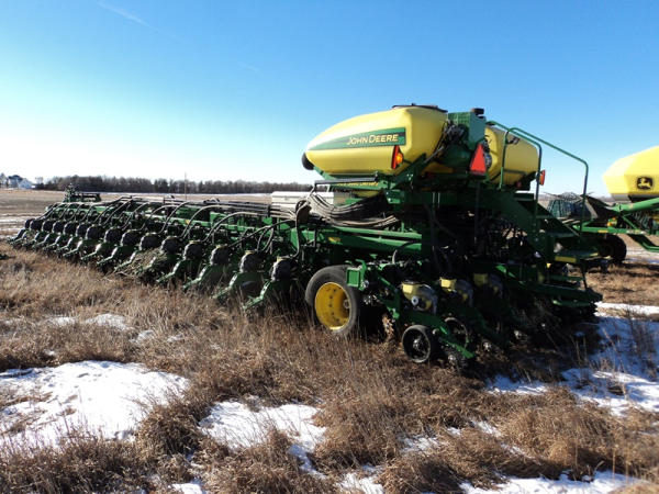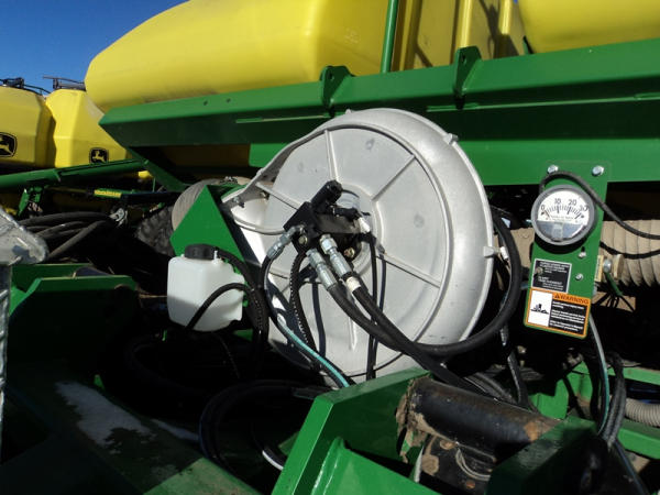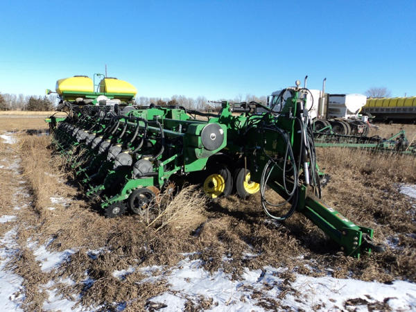 2012 John Deere DB 90 Planter (PZ8230), John Deere DB 90 36 row planter, CCS Seed Delivery system, row cleaners, weights, 445/50R22.5 tires, Bauer Built frame (S/N 1PAM3630EA0750528), S/N 1A0DB90XACM750152, with a RedBall 1700 liquid caddy, 1600 gallon poly liquid tank, Titan 18.4-26 tires.