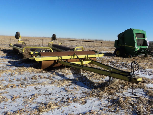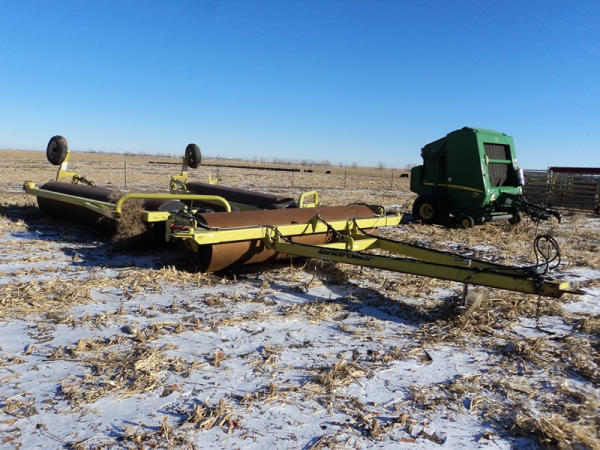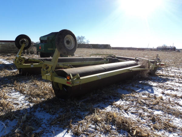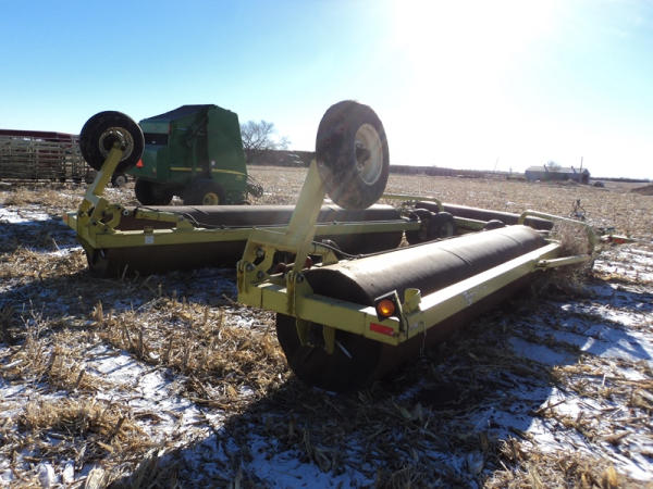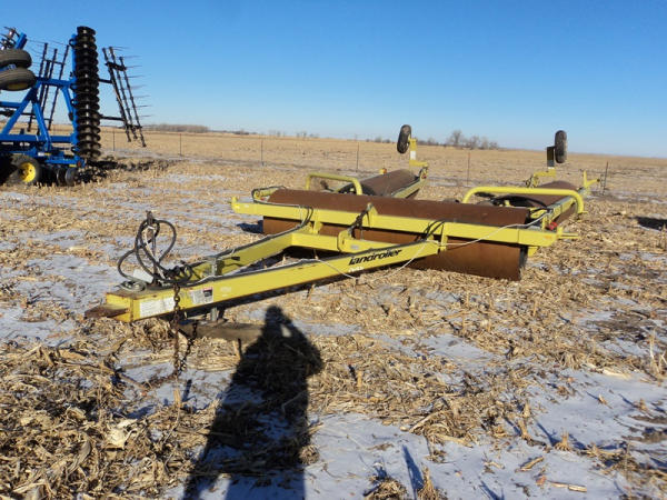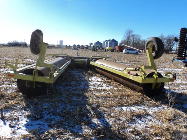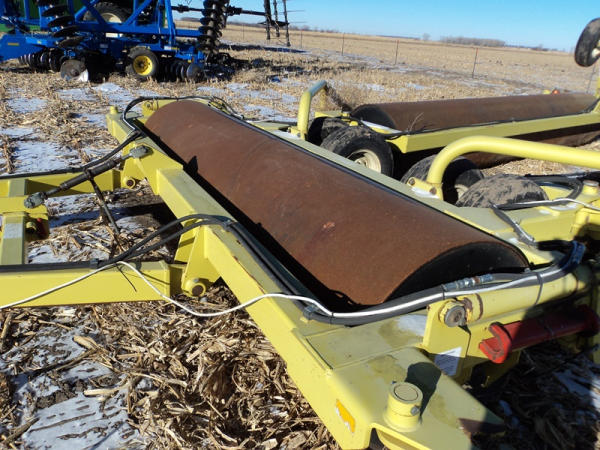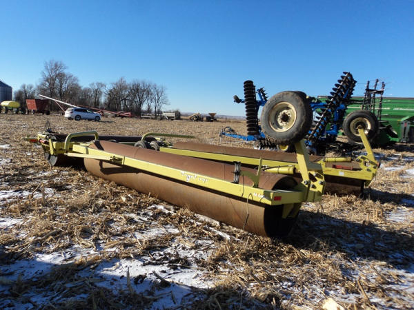 Degelman Landroller (PZ8224), Degelman model LR7645 landroller, 3 - drum (2 - 17' drums, 1 - 11' drum), hydraulic, 9.5L-15 flotation tires.
