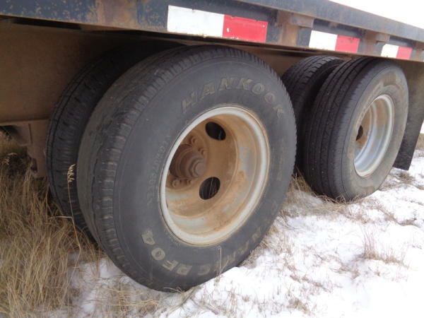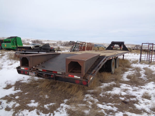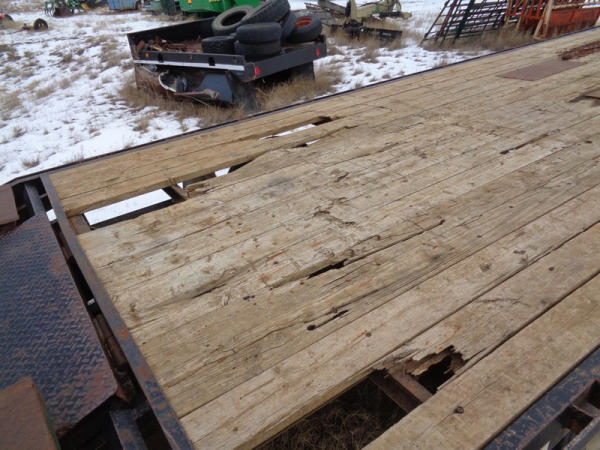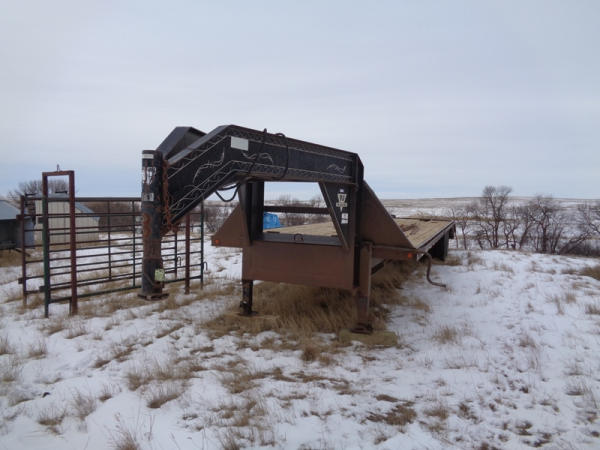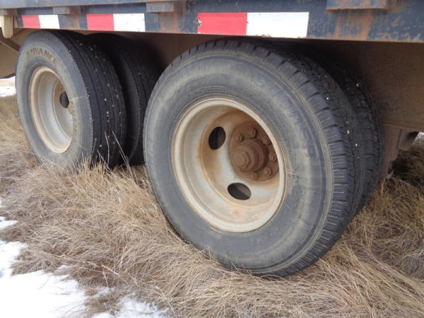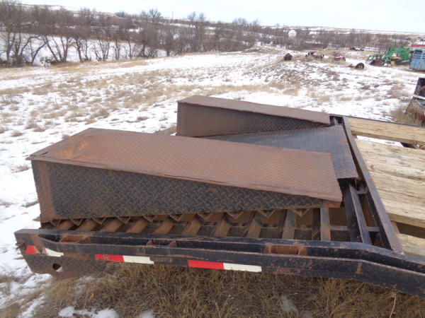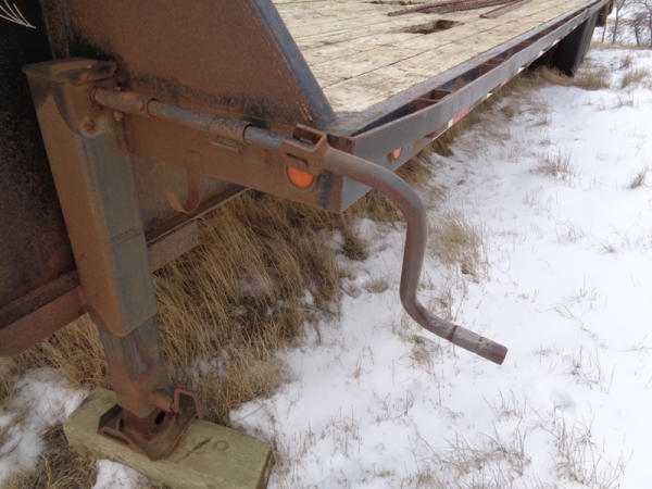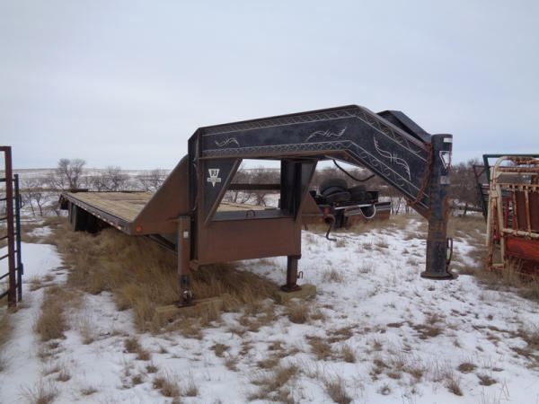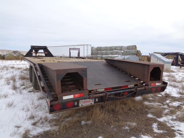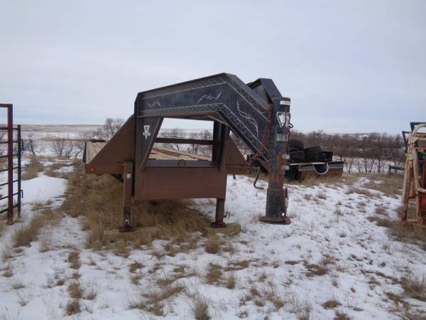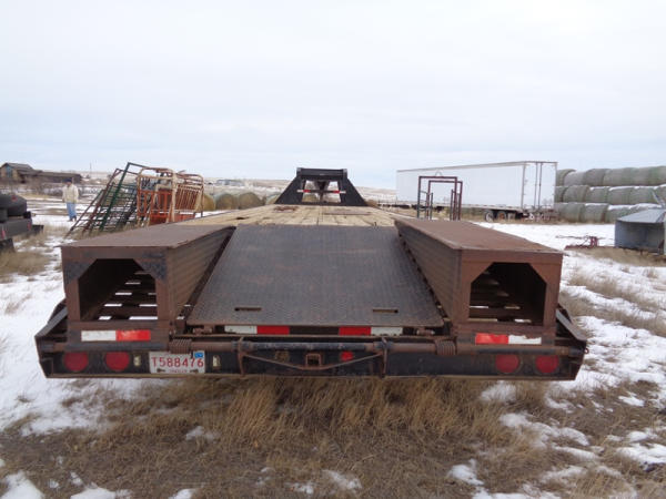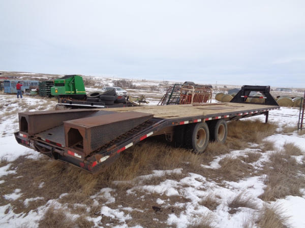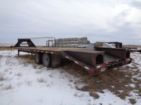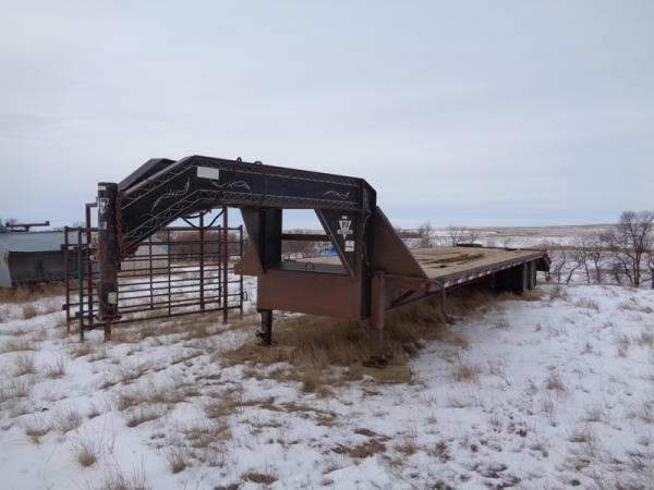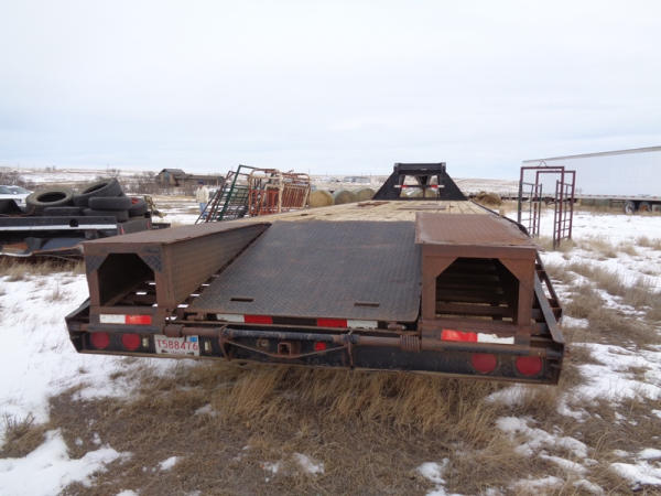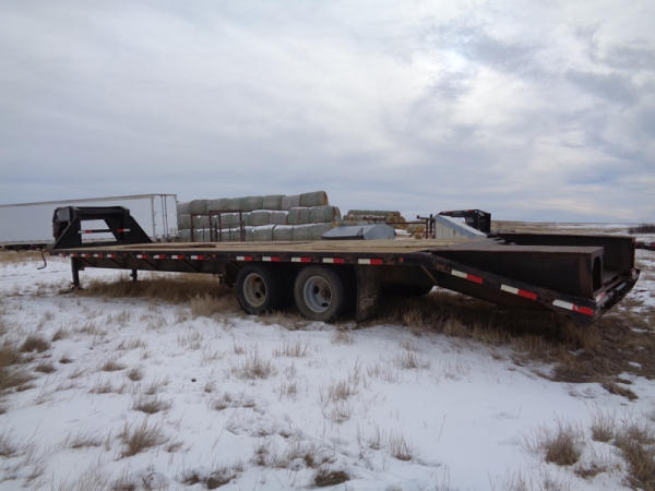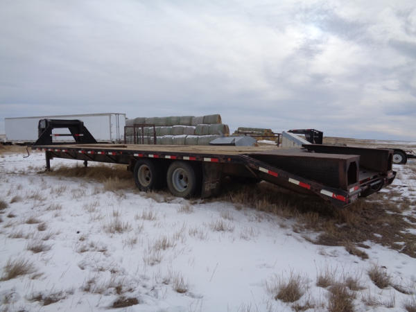1999 PJ Gooseneck Trailer (PZ8256), PJ Gooseneck trailer, tandem axle, dual wheel, 28' wood deck, 5'8" beaver tail, 4'9" fold down ramps.