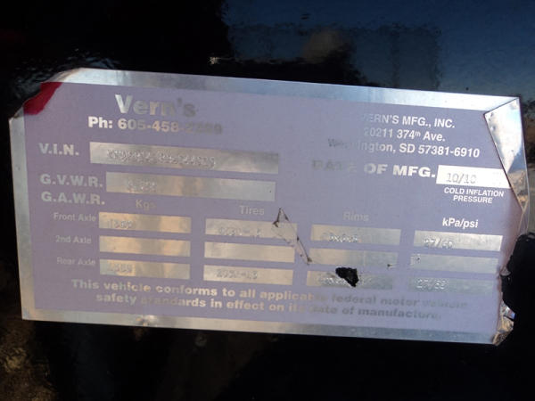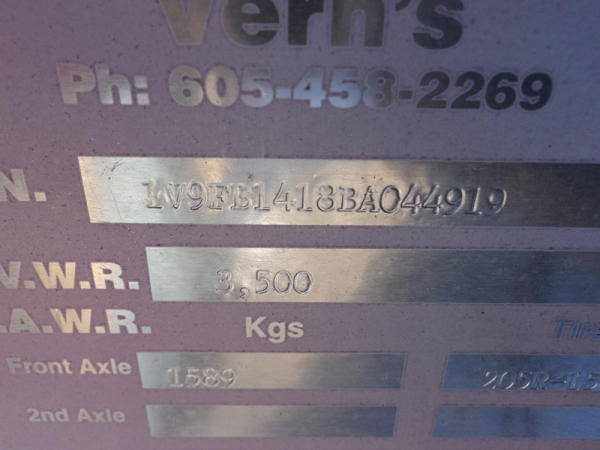 2010 Vern's Utility Trailer (PZ8228), 2011 Vern's Utility trailer, 7' x 14', wood floor, rear & side fold down ramp, single axle, ST205/75R15 tires.