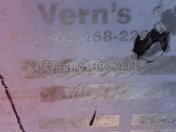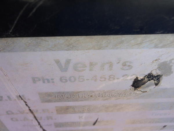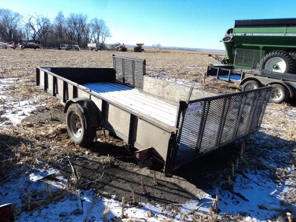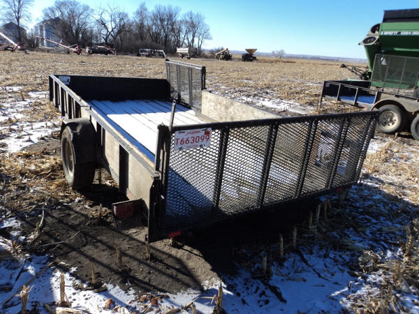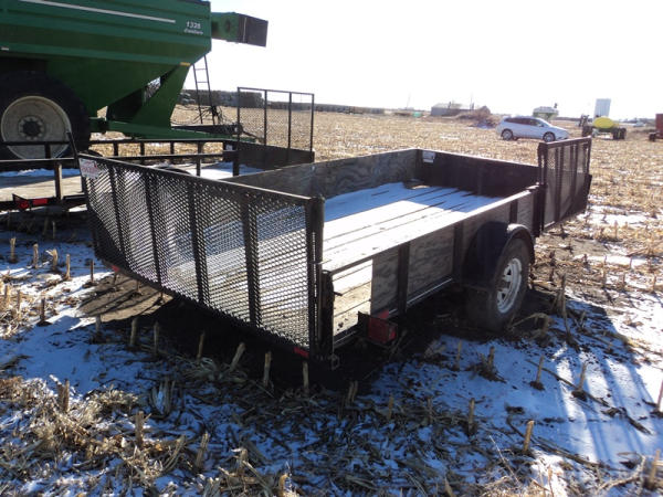 2011 Vern's Utility Trailer (PZ8221), 2011 Vern's Utility trailer, approx. 7' x 14', wood floor, rear & side fold down ramp, single axle, ST225/75R15 tires.