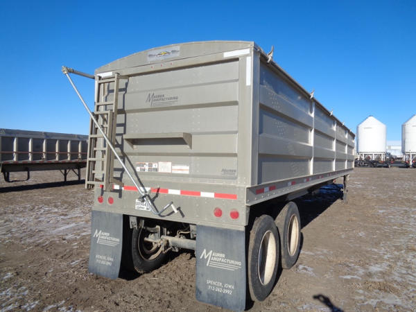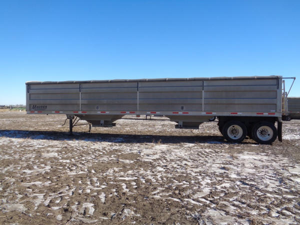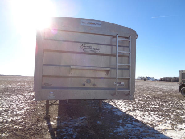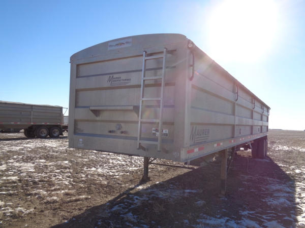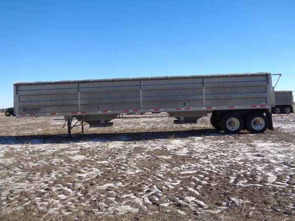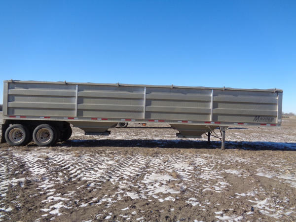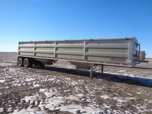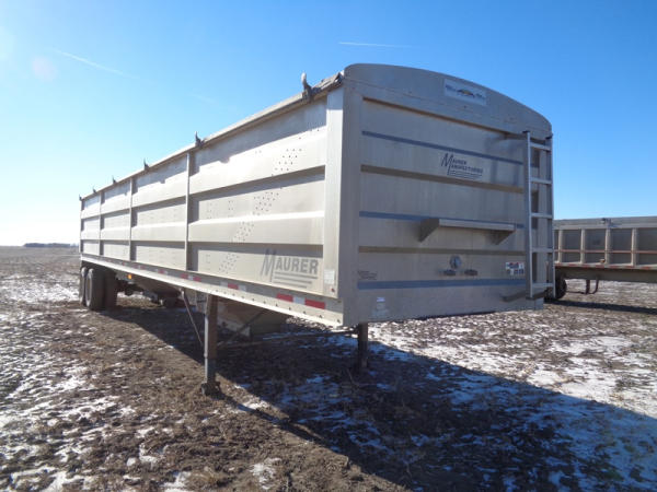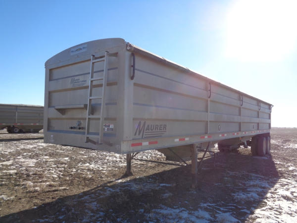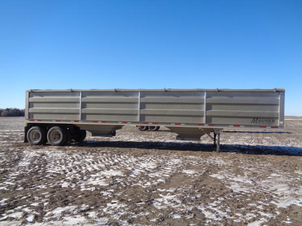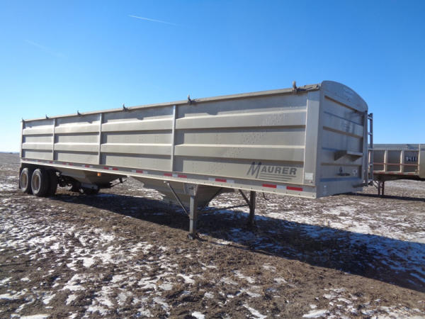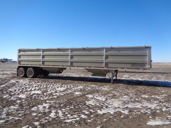 2014 Maurer Grain Trailer (PZ8234), 2014 Maurer aluminum hopper bottom grain trailer, tandem axle, spring suspension, roll over tarp, 285/75R24.5 tires.