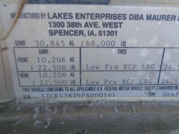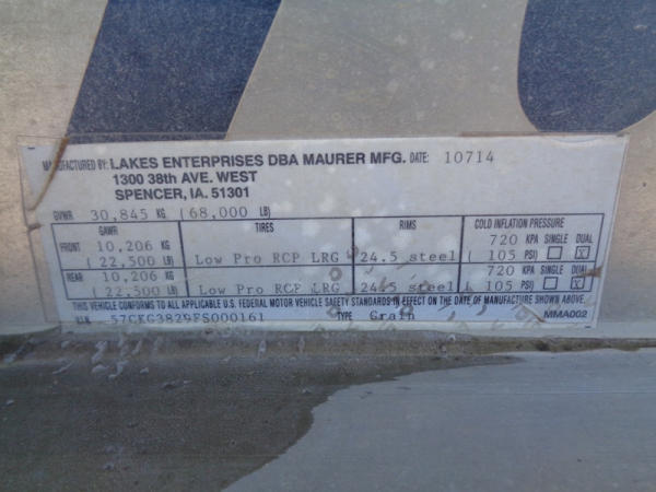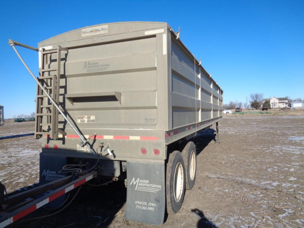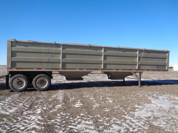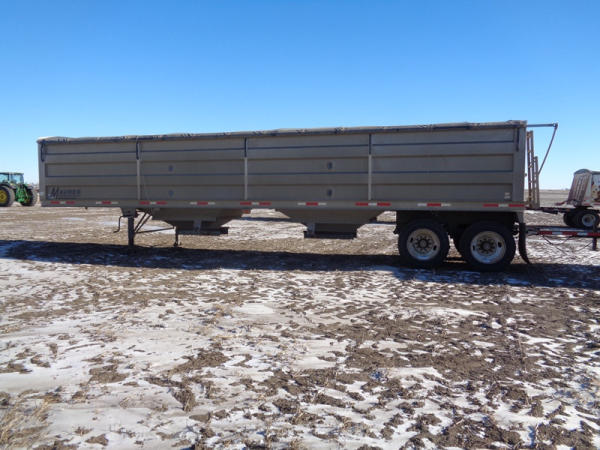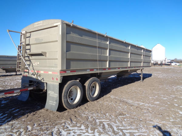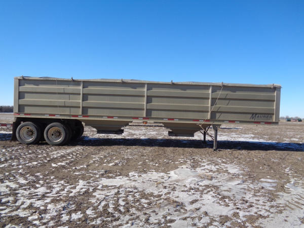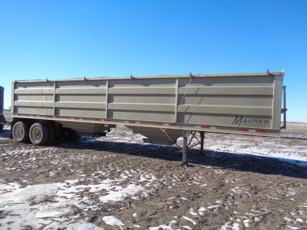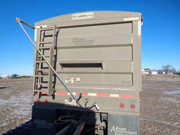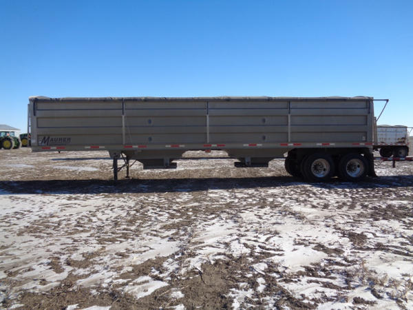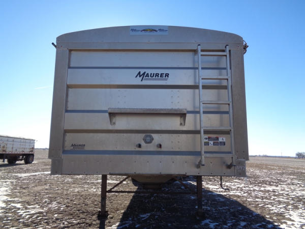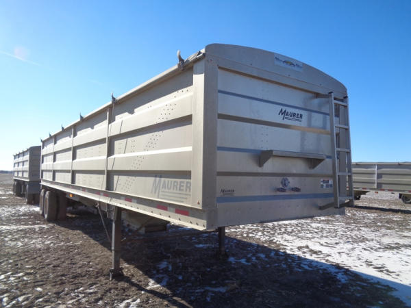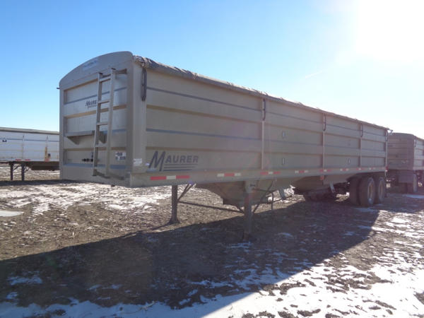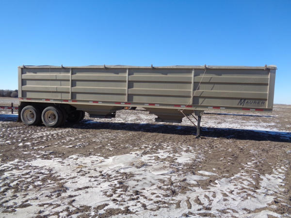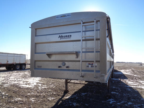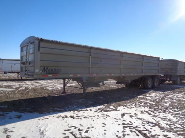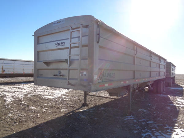 2015 Maurer Grain Trailer (PZ8235), 2014 Maurer aluminum hopper bottom grain trailer, tandem axle, spring suspension, roll over tarp, 285/75R24.5 tires.