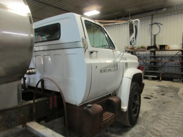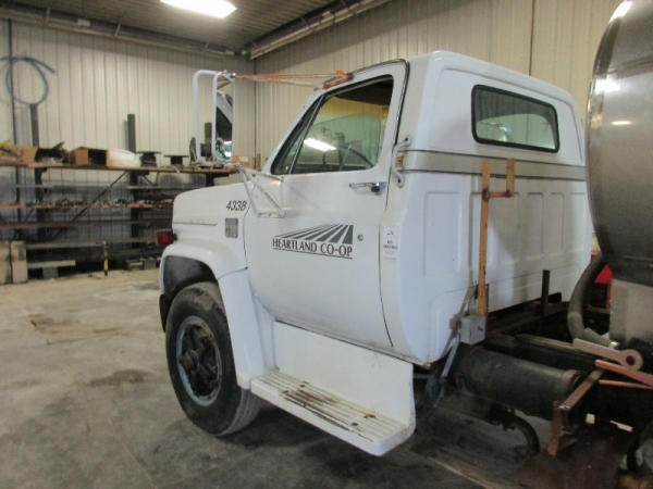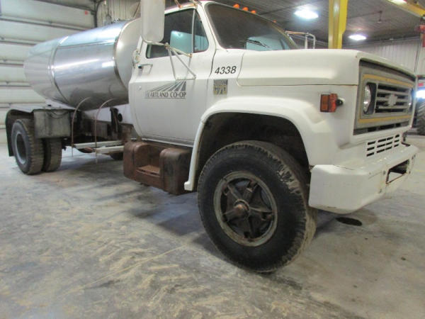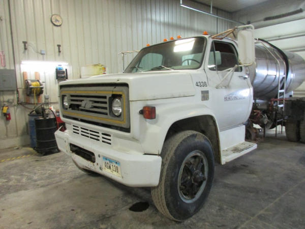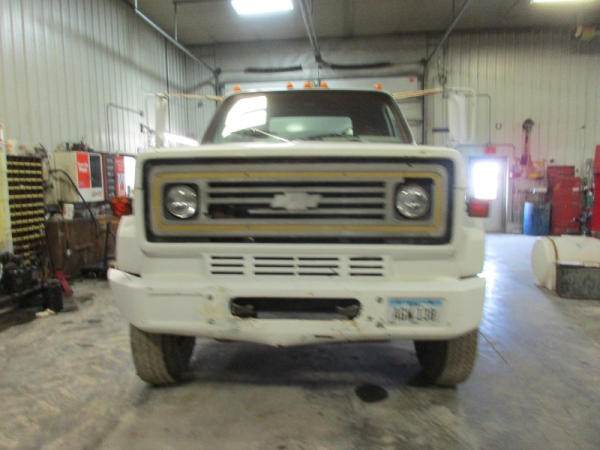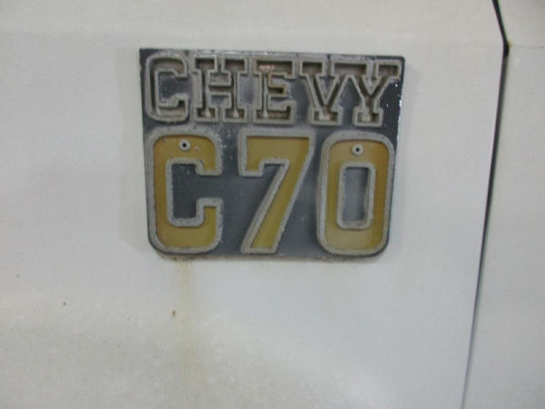 1979 Chevy C70 (DR8349 Unit 4338), gas engine, 5 speed transmission, 2 speed rear end, cab chassis, singke axle, 9.00-20 tires, rear ag bumper.