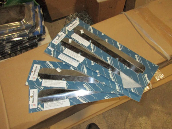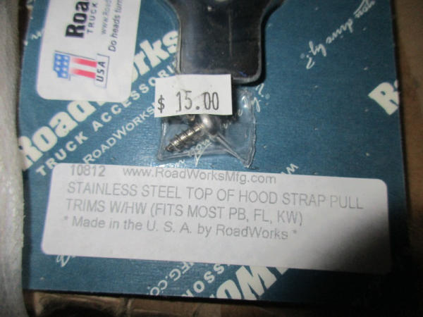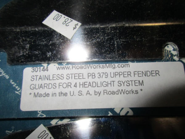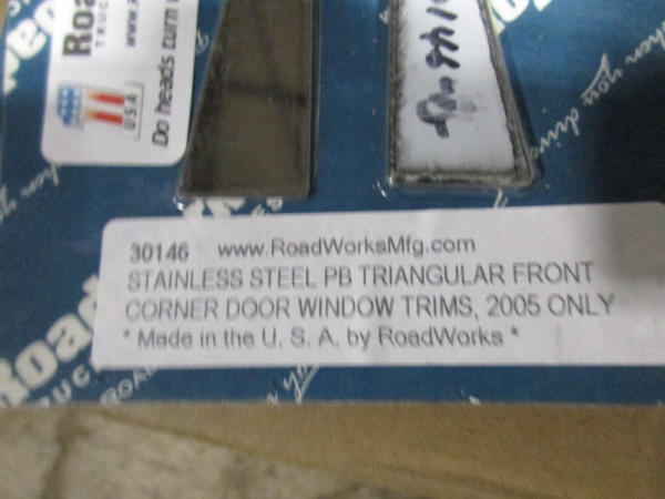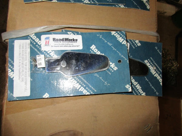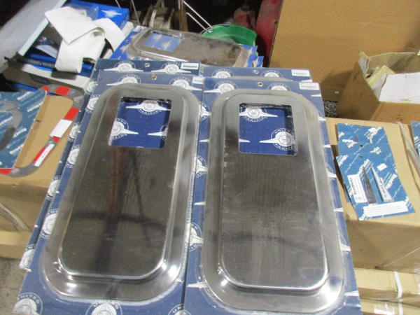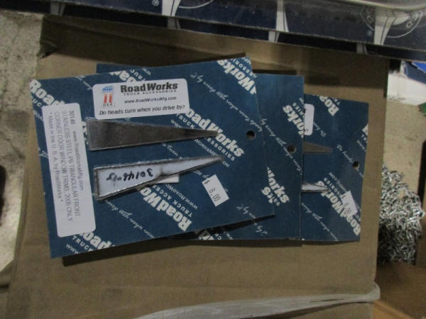 NEW Chrome Parts (DR8793), (4) United Pacific Pete shift covers, (3) Road Works Pete door trim plates, (2) Road Works chrome hood pulls, many Pete accessories, (5) Pete upper headlight fender gaurds.