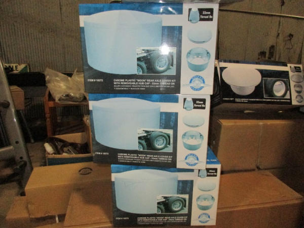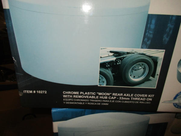 NEW Moon Hub Caps (DR8794), (8) chrome plastic moon hub caps, 4= #10277, 4= #10272, all are United Pacific parts.