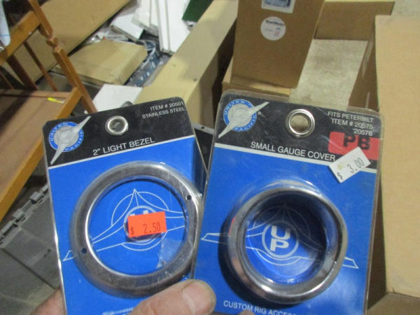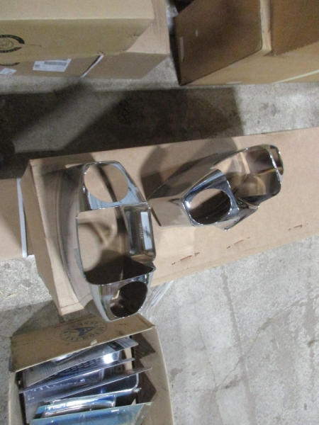 NEW Chrome Accessories (DR8802), (4) chrome plated speaker covers for Freightliner 07 & newer, vent and radio trim covers, upper steering column covers, (40+) Pete gauge covers.