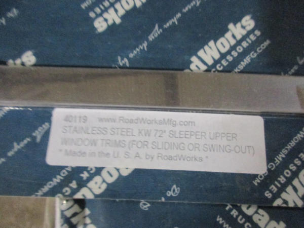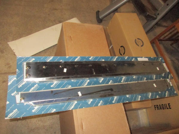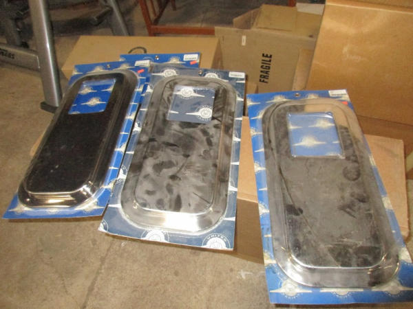 NEW Chrome Accessories (DR8803), most are Pete parts, Roadworks door trims, (2) upper window trim for KW daylights, KW sleeper trim, (4) Pete stainless steel shift plate covers, (4) sets of vertical bars for Pete hood.