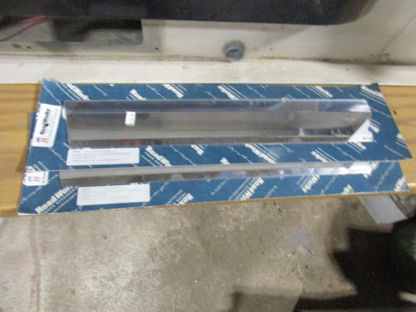 NEW Chrome Accessories (DR8804), (4) stes Pete headlight visors, (5) Pete logo trims, Pete & KW air deflectors, (2) Pete vent trims, (2) stainless steel beacon brackets, (4) stainless steel permit brackets.