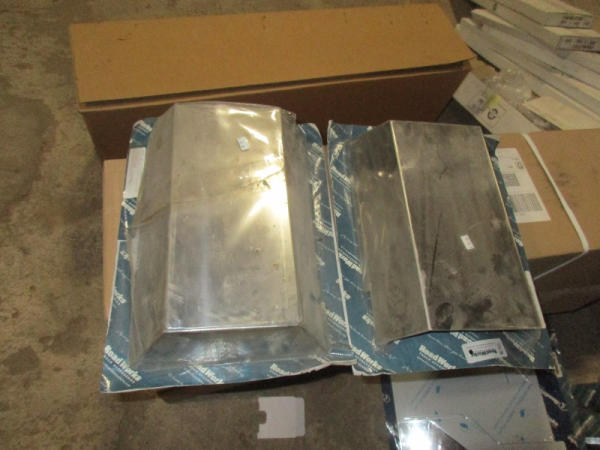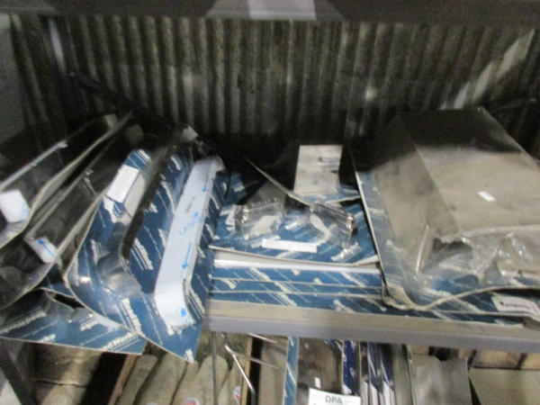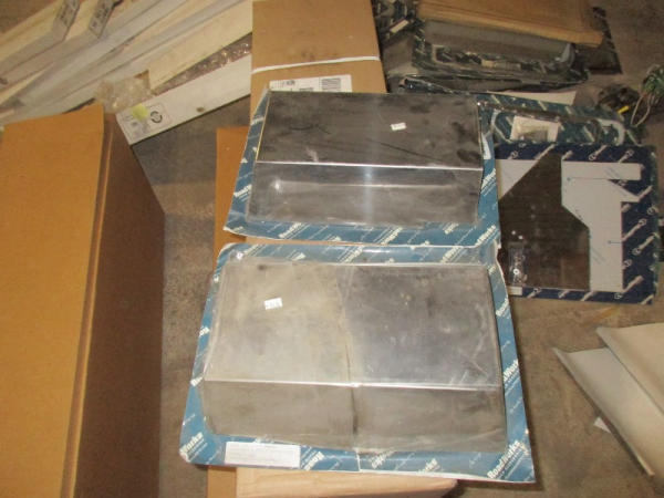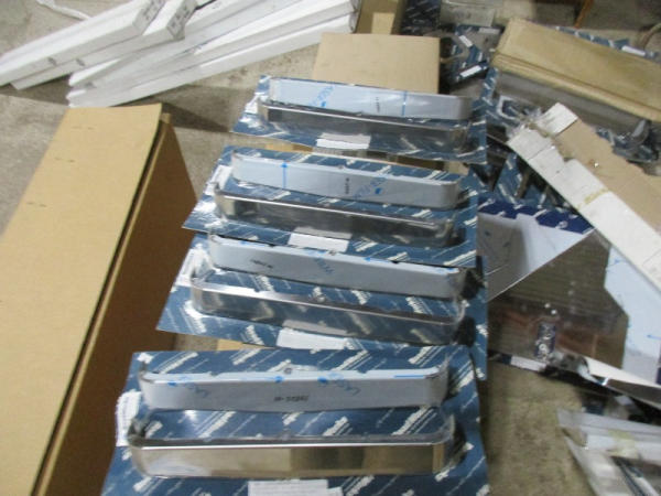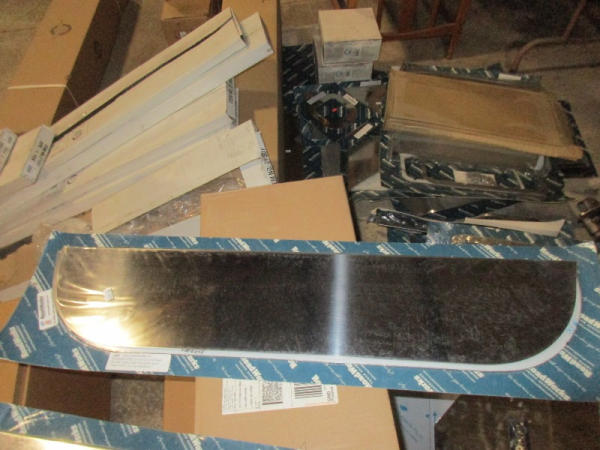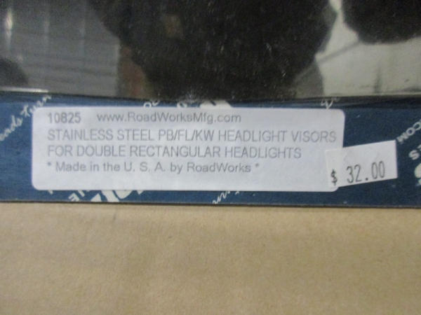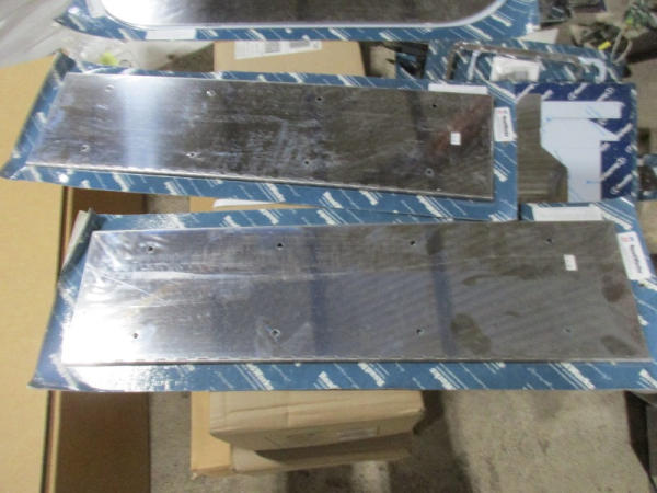 NEW Chrome Accessories (DR8809), (5) sets headlight visors, (2) stainless steel hingede plate holders, Pete chrome door trims, Pete stainless steel light mirror brackets, (2) Pete sleeper shock covers.