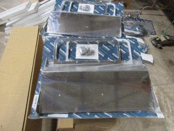 NEW Chrome Accessories (DR8811), Pete door & mirror trims, Pete headlight deflectors sets, (2) Pete 379 headlight trim w/fender gaurds, Freightliner fender gaurds, Pete 379 Hood extensions, Pete 379 sidehood deflectors, (2) Pete chrome door latch kits, stainless steel license holders.