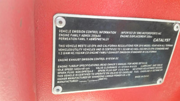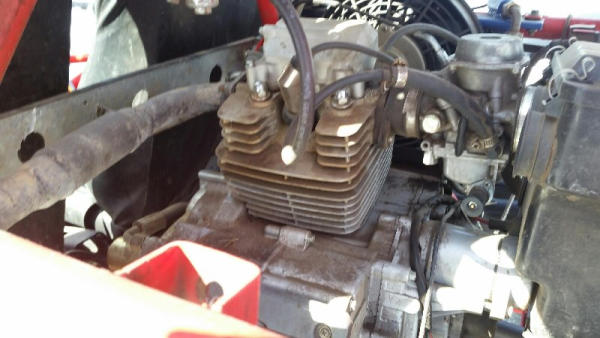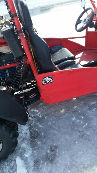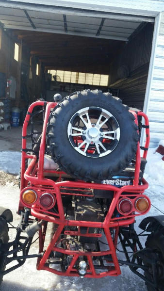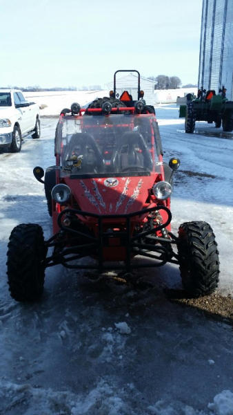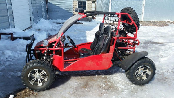 2010 Bully Dog Dune Buggy (DR8744), 359 CC gas engine, 4 stroke single cyclinder, top speed 57 MPH, semi-automatic transmission, front & rear vented disc brakes, fully independant suspension, 11" ground clearance, open roll cage, light package, bucket seats, rear receiver hitch w/650 lbs tow capacity, cast aluminum sport wheels.