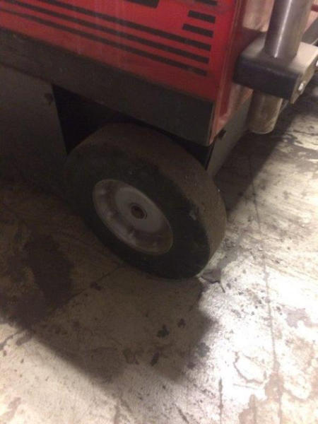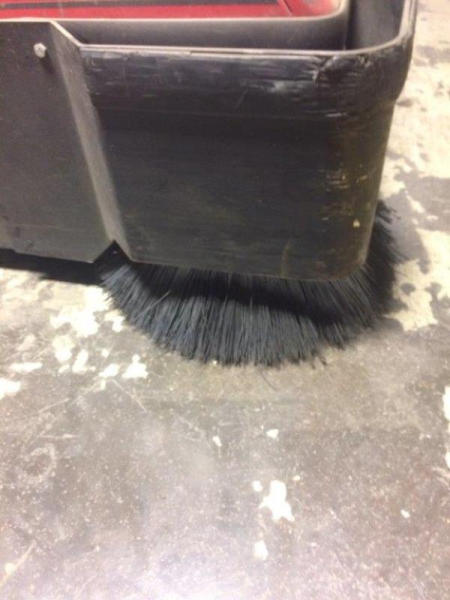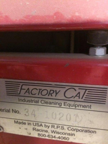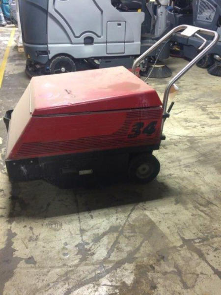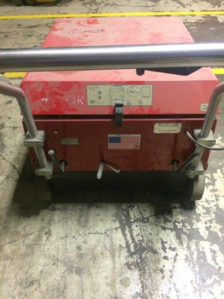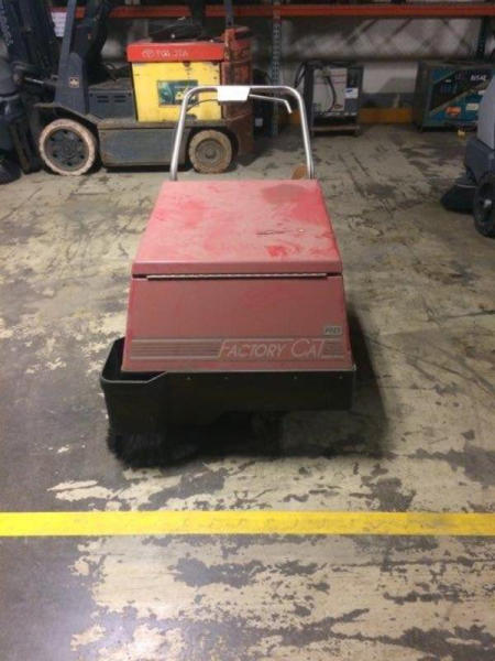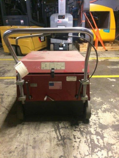 CAT FC-34 Factory Sweeper (PD756), walk behind sweeper with side broom, unit works & operates as it should, solid wheels, paint & decals in good shape, built in 110v battery charger, shows 255 hours.