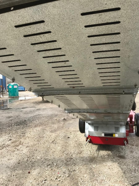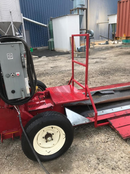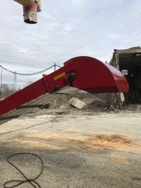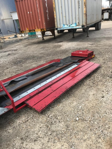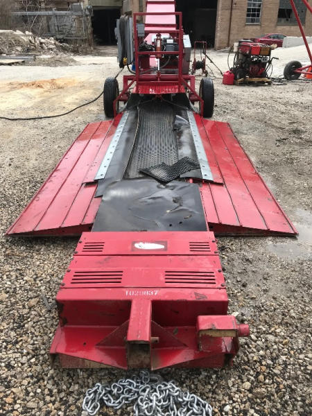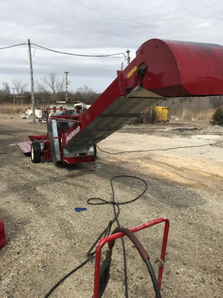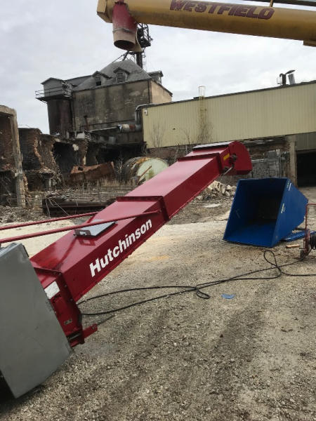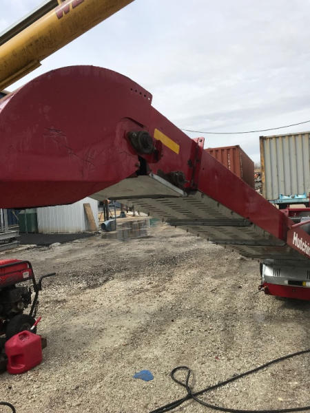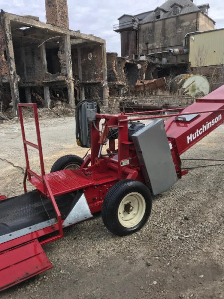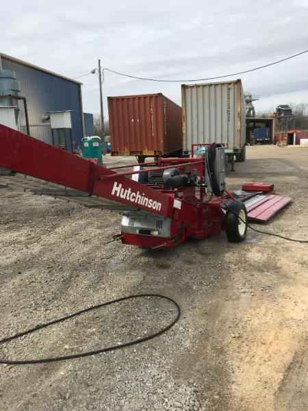 Hutchinson Drive Over Conveyor (TH261), 15 HP motor, extra wide 24" belt, smooth transition from horizontal to incline, receive from side dump wagons as well as bottom dump and rear dump vehicles, has 5 foot extension from the standard model, belt needs to be re-aligned.