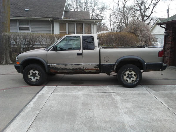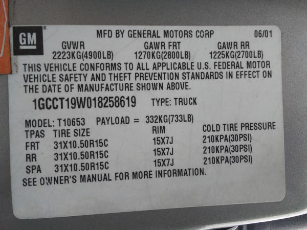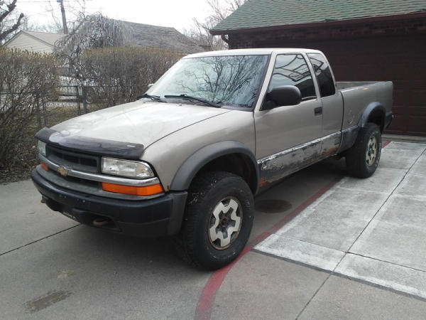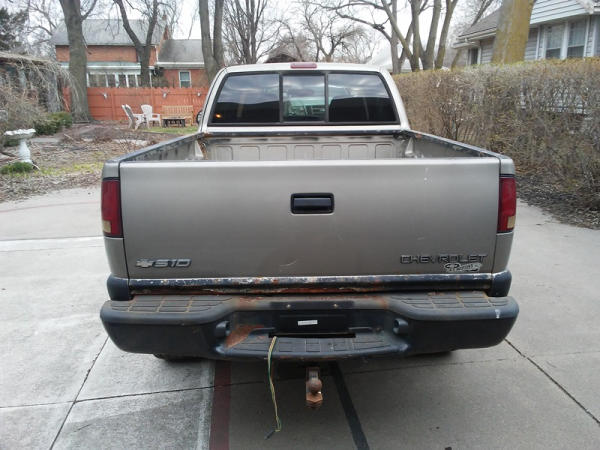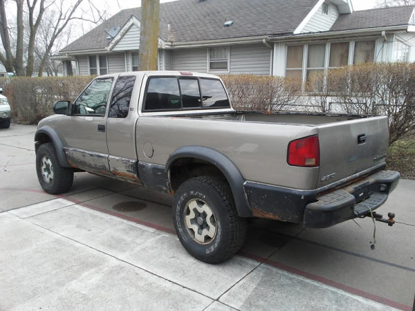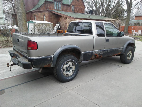 2001 Chevy S10 4X4 (KMK523), 4.3 liter gas engine, automatic transmission, 4X4, extended cab with fold down rear seat, rear hitch, AM/FM/CD radio, cruise control, heat and air conditioning, sliding rear window, power windows and locks, 265/75R15 tires, shows 296,813 miles.
